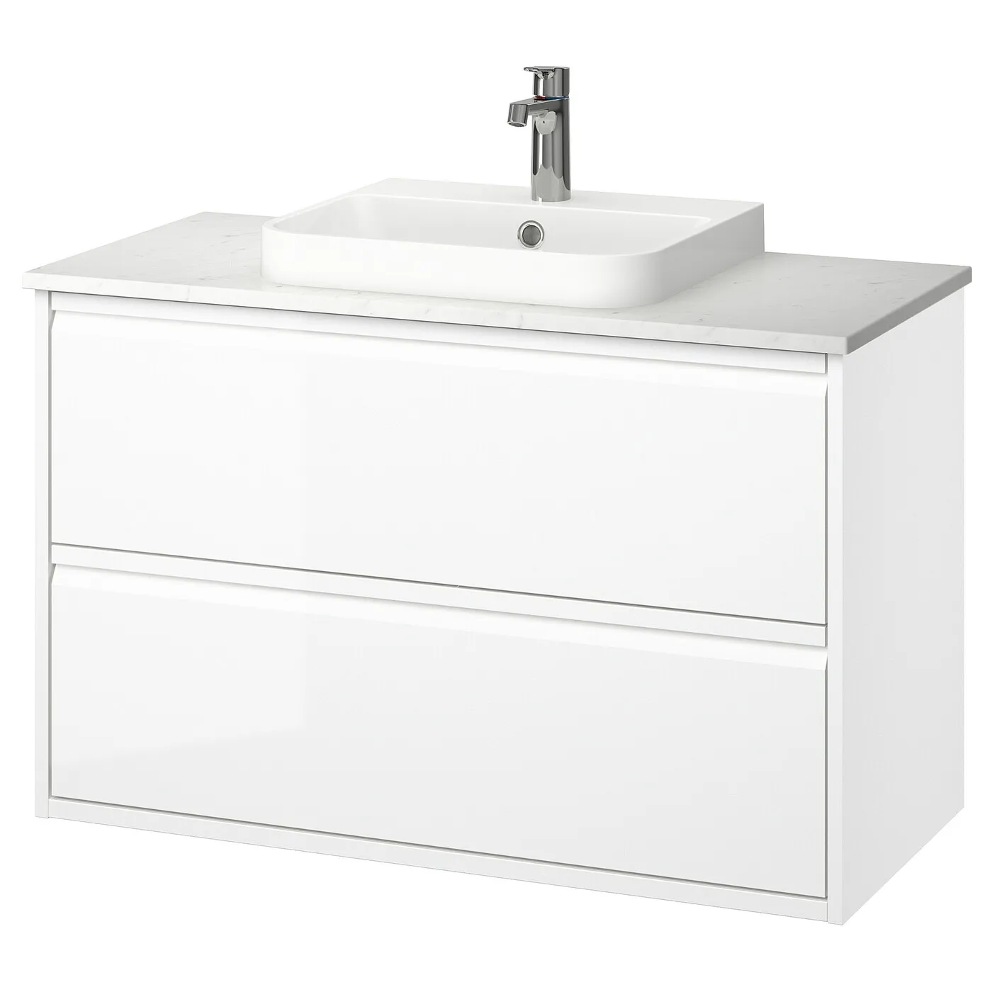 Мебель для ванных комнат ÄNGSJÖN обладает современным стилем с минимальными деталями. Эта тумба с полуутопленной раковиной и столешницей создадут уникальный и стильный центр в вашей ванной комнате.