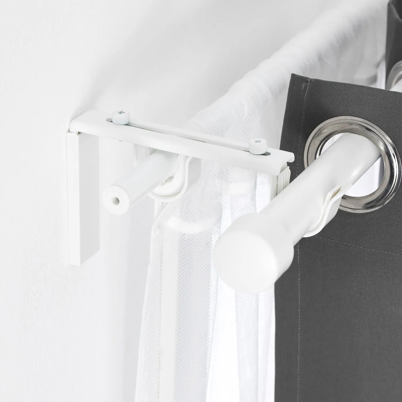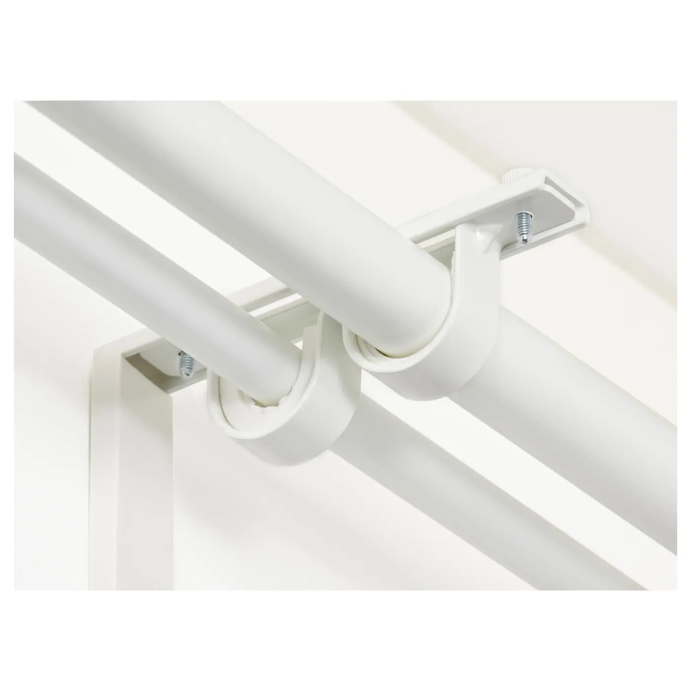 Вы можете установить его в настенном/потолочном кронштейне BETYDLIG, чтобы создать опору для двойного карниза.