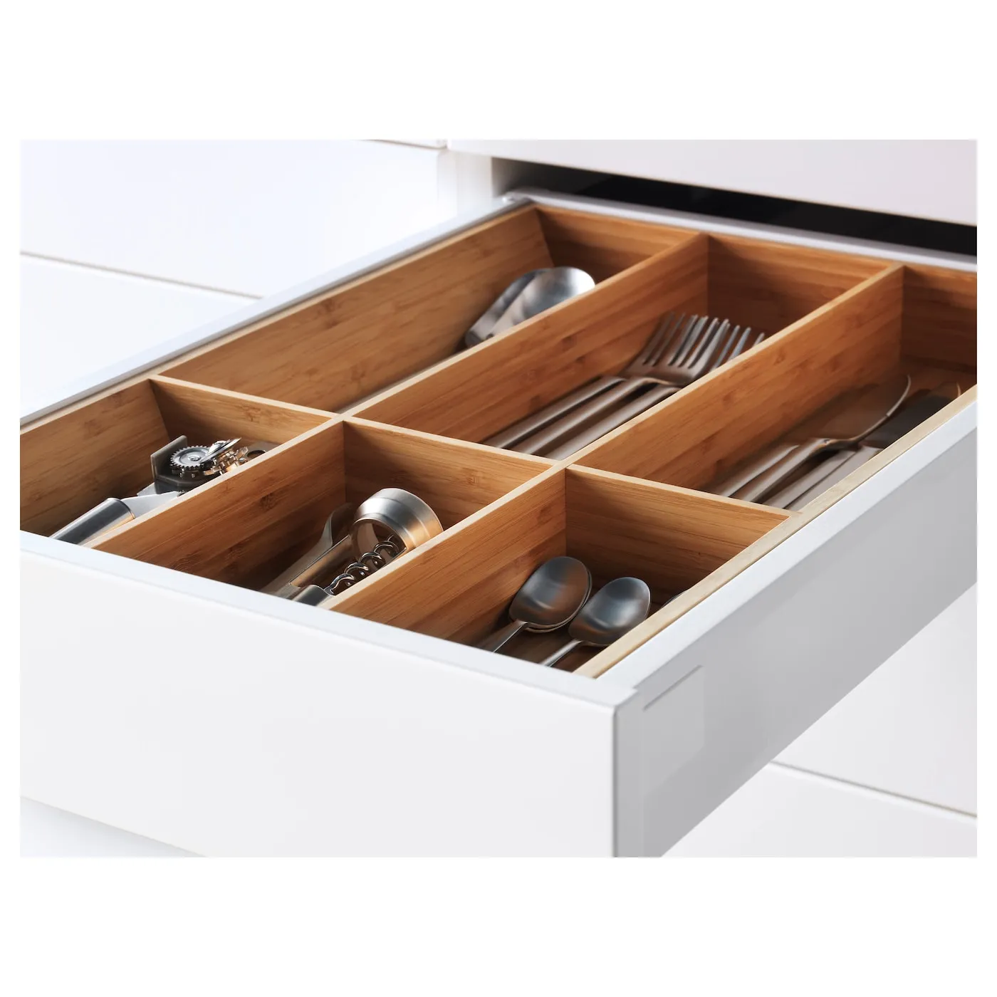 Для организации и эффективного использования пространства, ящики MAXIMERA могут быть дополнены органайзерами VARIERA, такими как поддон для столовых приборов, поднос для утвари или держатель для тарелок.