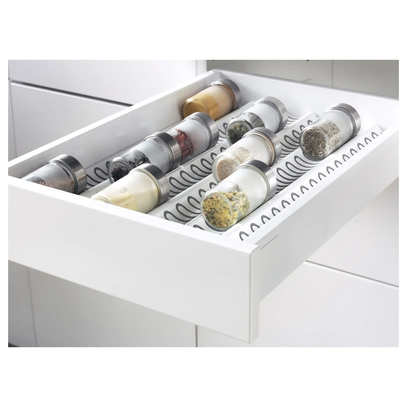 Можно дополнить фронтами ящиков UTRUSTA для создания внутренних ящиков с большим объемом хранения и единым внешним видом, как внутри более высокого ящика, так и за дверью.