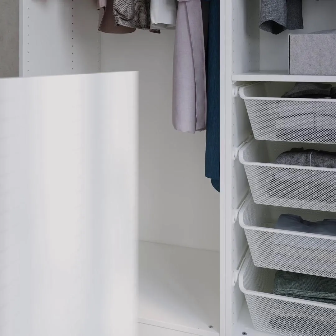 Совмещайте с любым внутренним органайзером KOMPLEMENT 50x58 см в зависимости от ваших потребностей. Например, с 4 ящиками или корзинами, или с 1 выдвижной вешалкой для брюк и 1 выдвижной полкой.