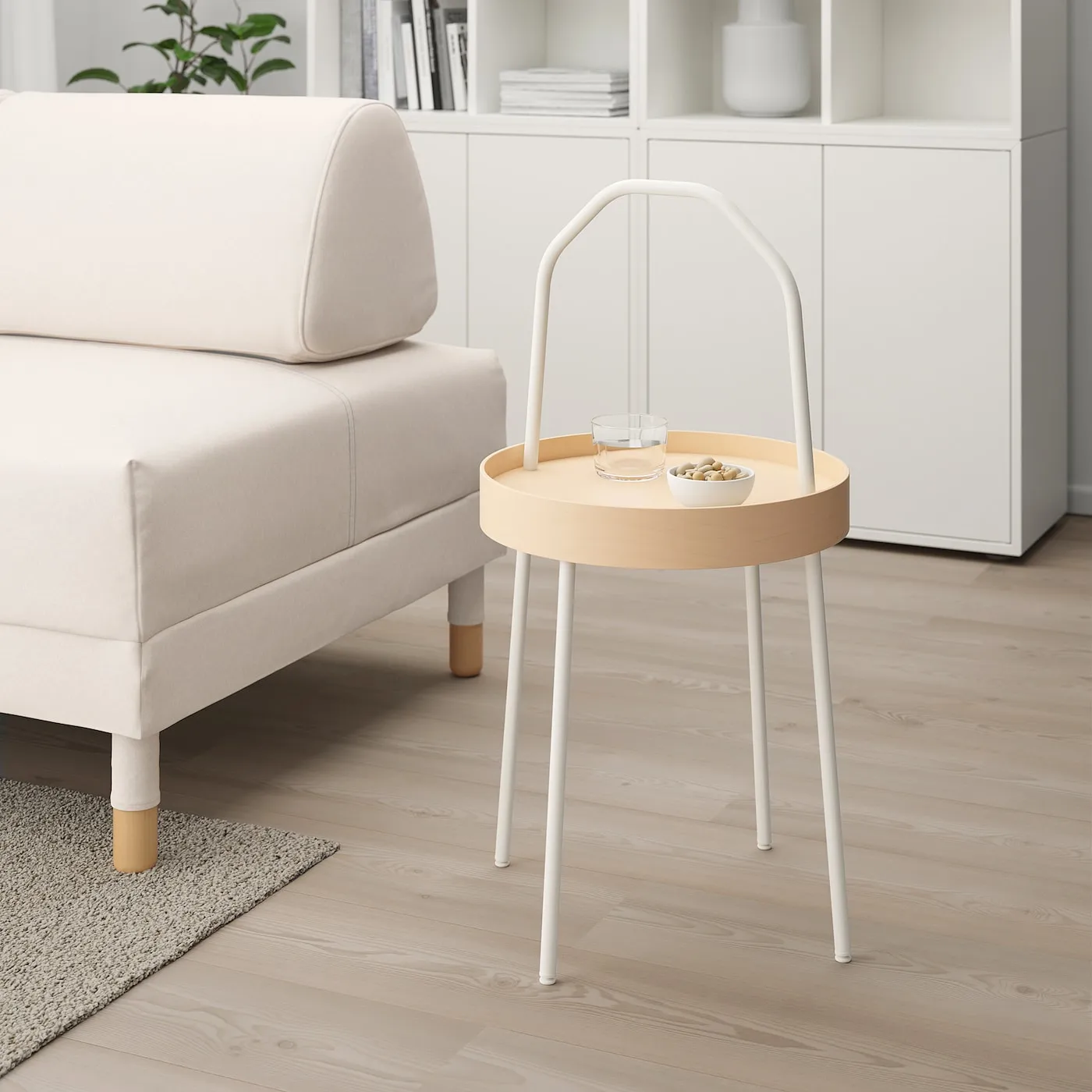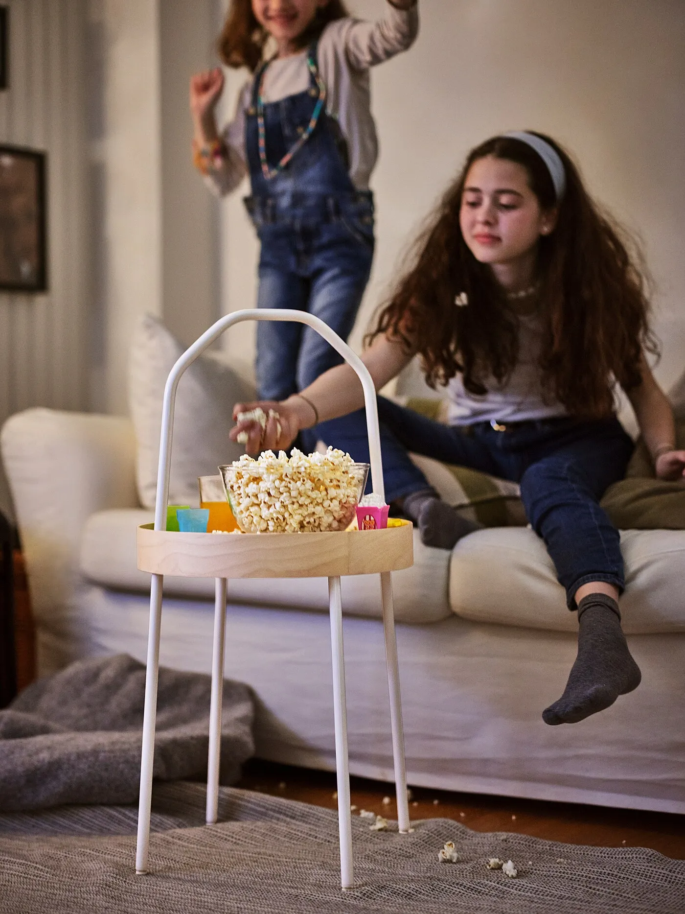 Столик достаточно легкий и компактный, чтобы поднять его одной рукой, а благодаря ручке его удобно переносить по дому.