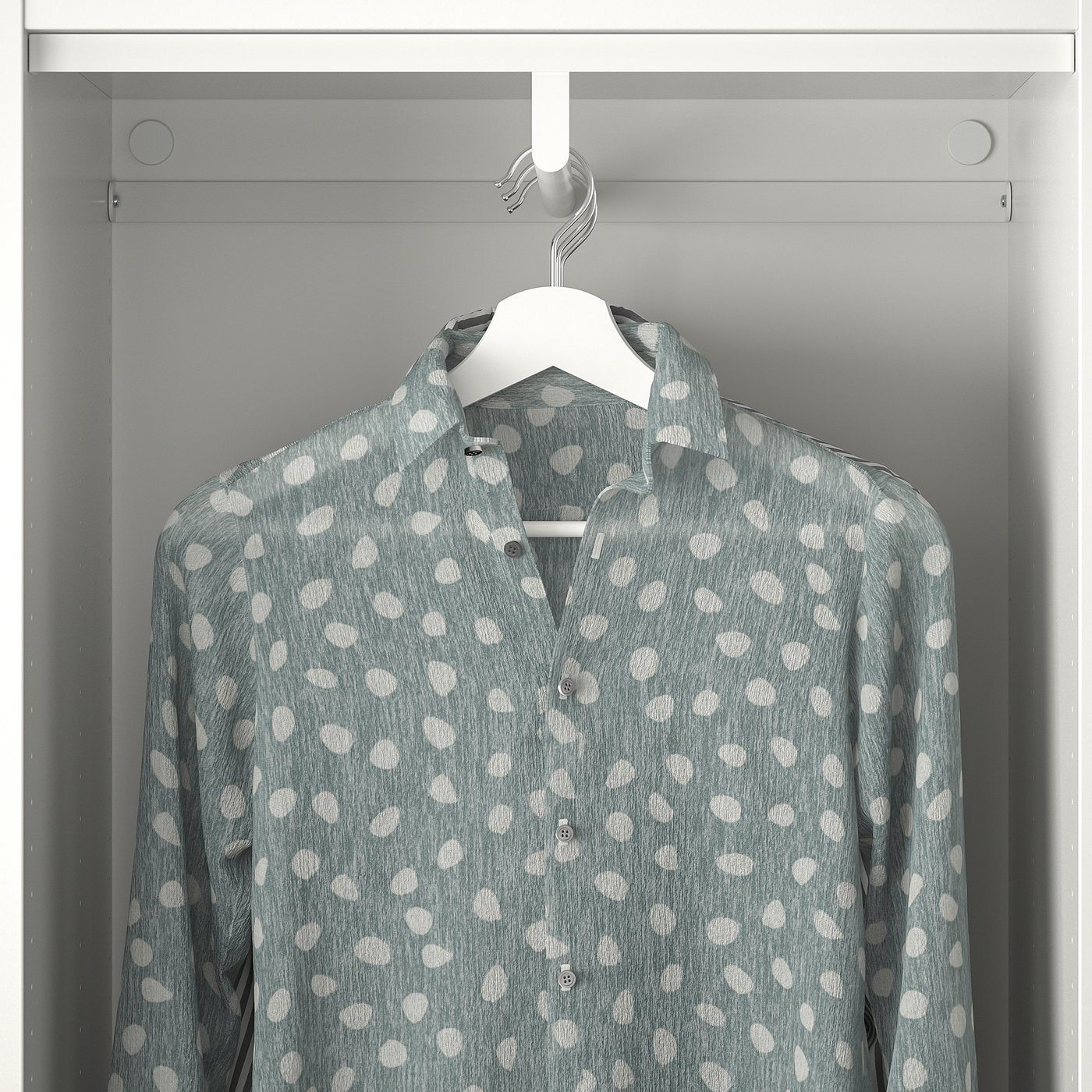 Штанга для одежды позволяет вешать вещи лицевой стороной вперед в неглубокой раме шкафа.