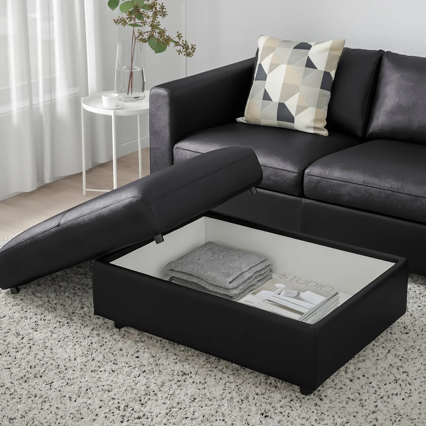 Пуф оборудован вместительным отсеком для хранения под сиденьем, чтобы важные вещи всегда были под рукой, а пространство вокруг дивана оставалось аккуратным.