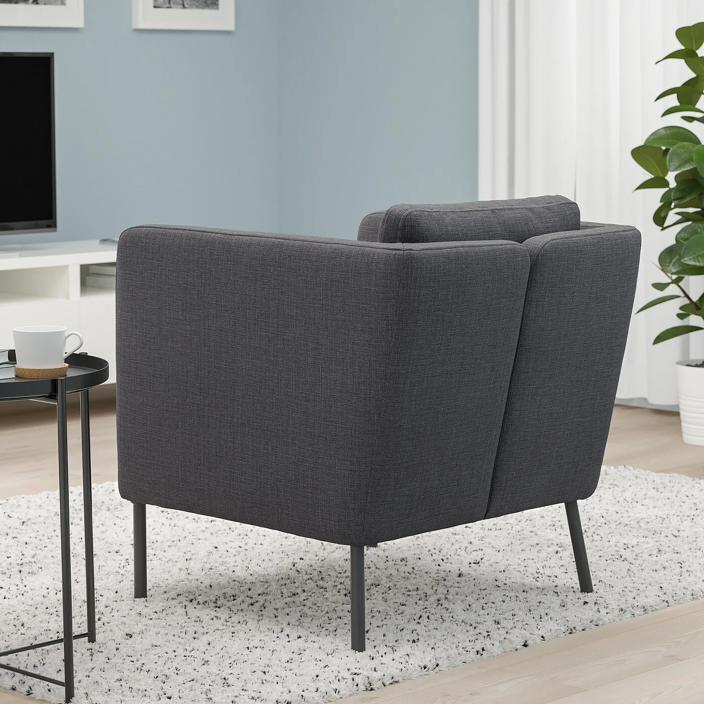 Выбирайте стильные темные оттенки или добавьте яркости вашему дому с помощью цветных чехлов. Кресло EKERÖ обладает элегантным и современным видом с двумя боковыми элементами, которые соединяются сзади, а поясничная поддержка добавляет комфорта!