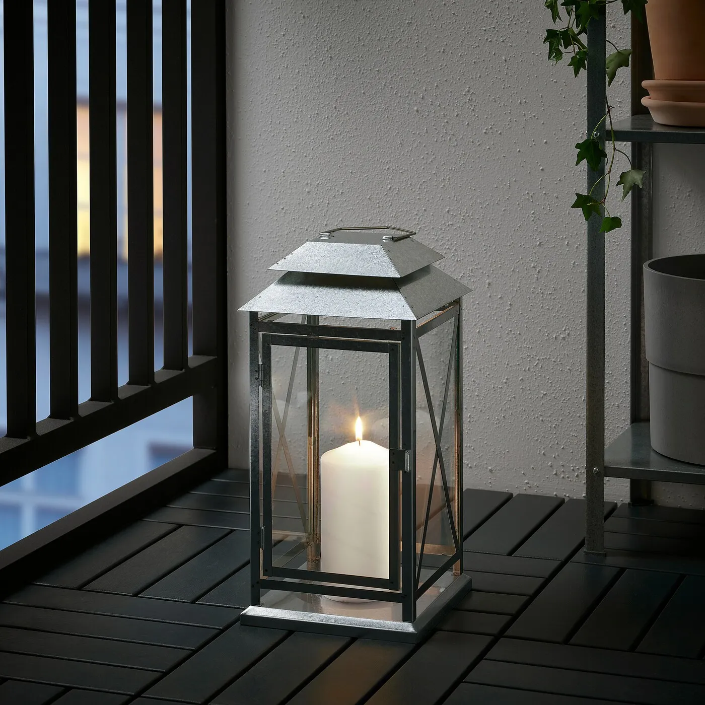 Теплый свет свечи красиво проявляется через узор на фонаре.