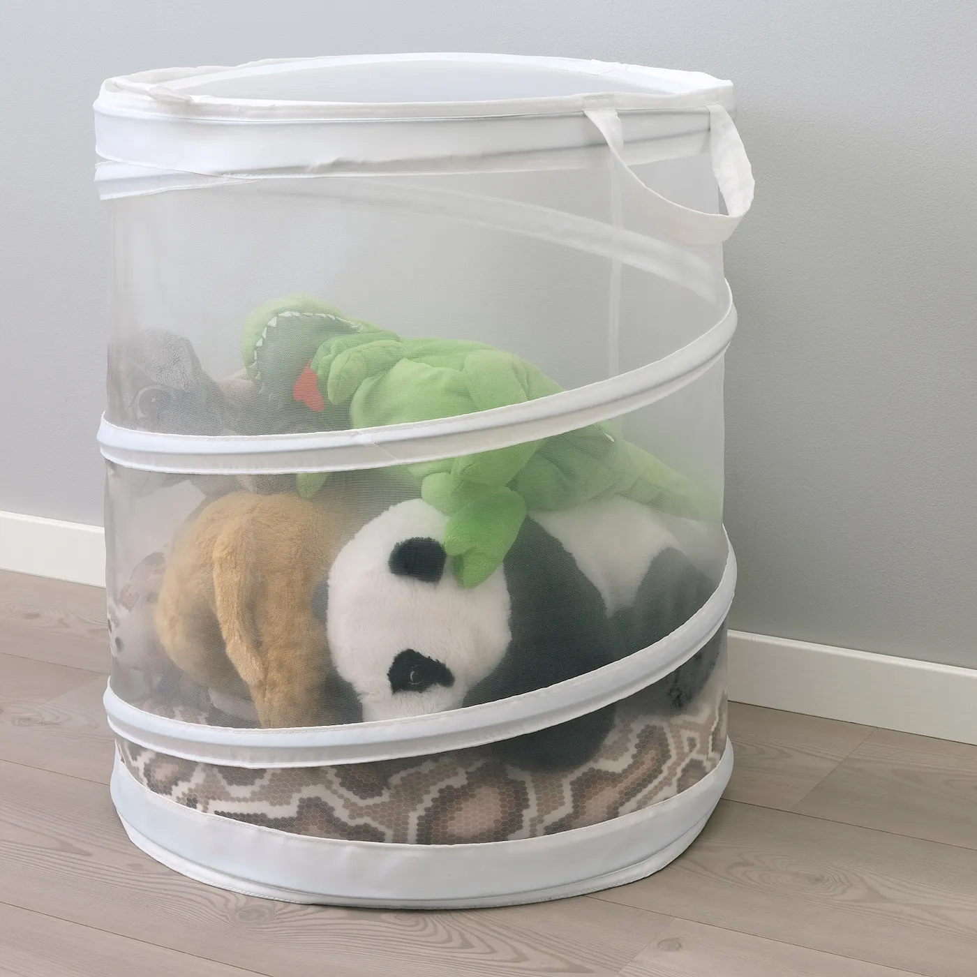 Эта легкая корзина с ручками удобна в переноске, а её конструкция позволяет одежде «дышать». Изначально предназначалась для белья, но её также используют для хранения мягких игрушек, благодаря её прочности.