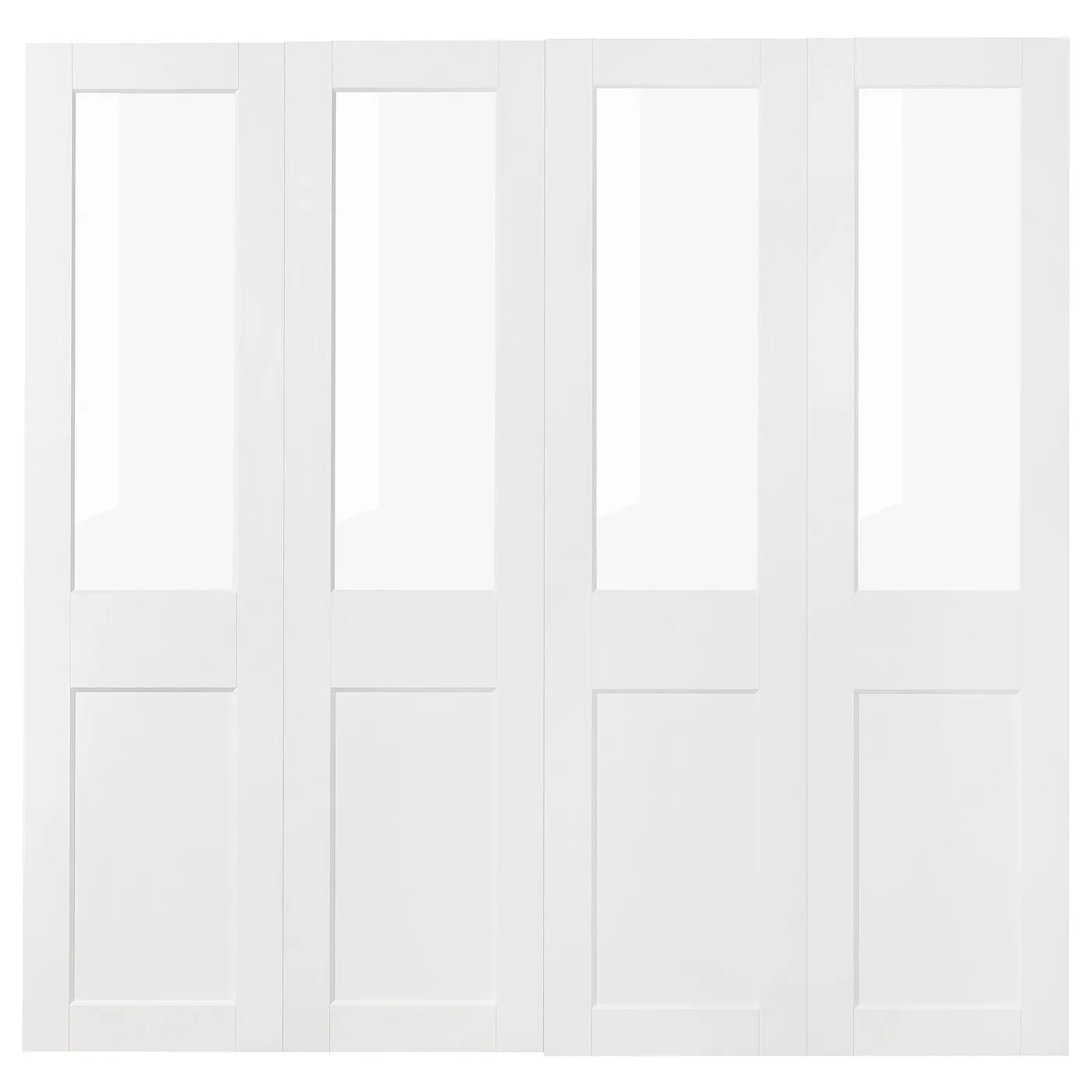 Раздвижные двери GRIMO с верхней частью из стекла идеально подойдут тем, кто хочет продемонстрировать свои свежеглаженные рубашки или яркие платья. Они отлично сочетаются с белыми рамами гардероба из серии PAX.