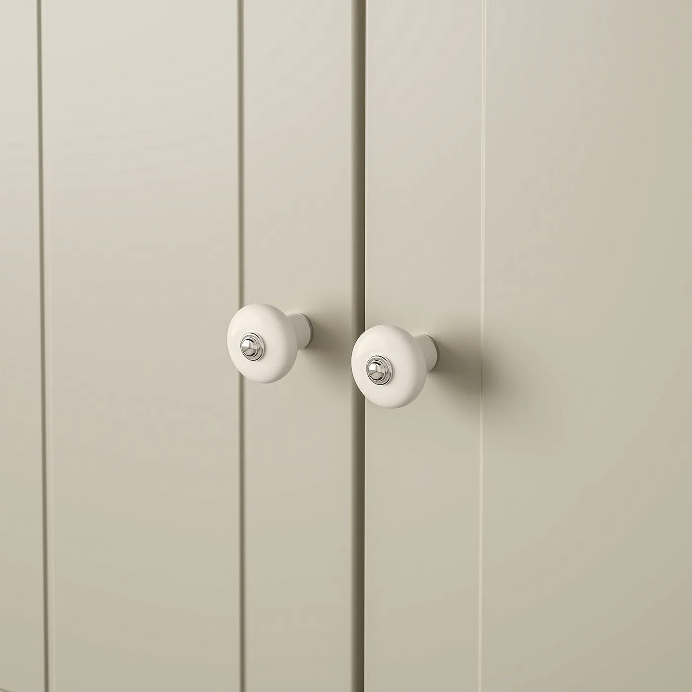 Эти ручки под фарфор в белом цвете добавят традиционной нотки вашей кухне.