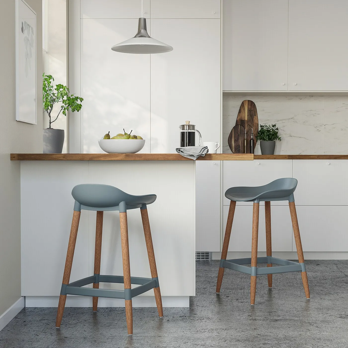 Этот барный стул подходит для кухонных столов и островков.