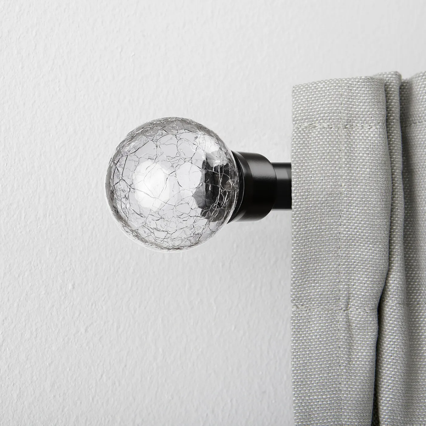 Независимо от того, новые у вас шторы или нет, вы можете легко придать карнизу стиль, добавив новые наконечники. Например, такие круглые с треснувшим стеклом дымчатого оттенка.