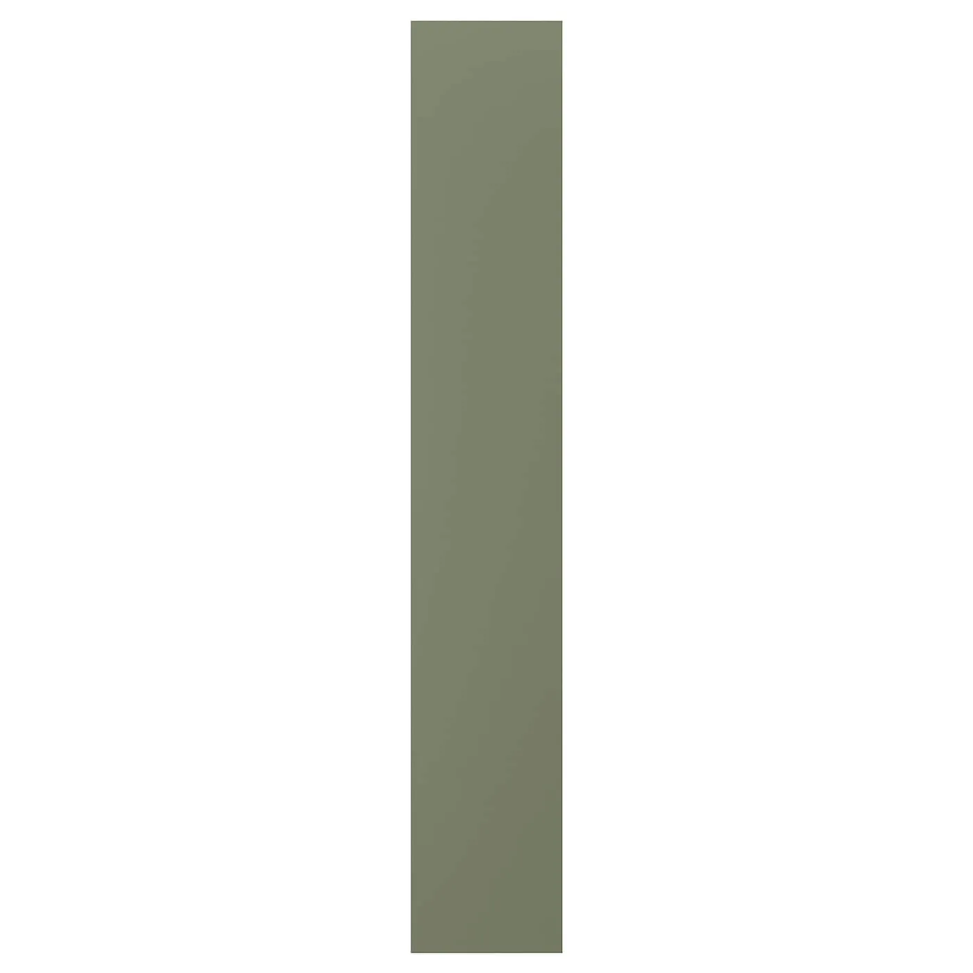 Панели-заглушки в той же гармоничной матовой серо-зеленой гамме, что и ваши фасады, придают кухне единый облик и подчеркивают стиль.