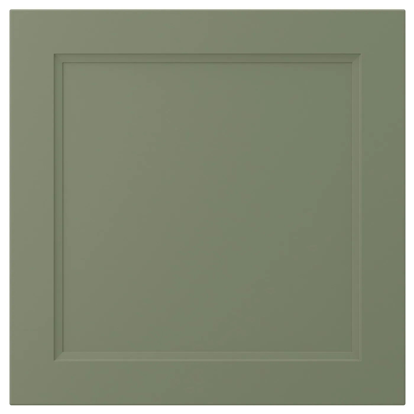 Матовая поверхность фасадов в гармоничном серо-зеленом оттенке с вставной панелью создает традиционный облик, наполняя кухню спокойной, но выразительной атмосферой, отвечающей всем современным требованиям.
