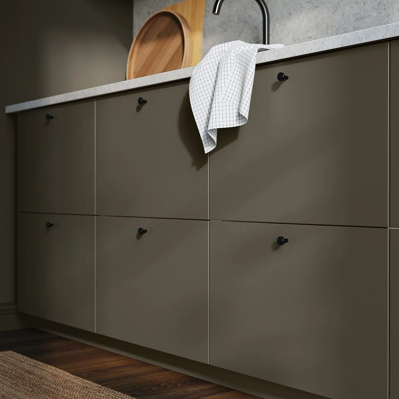 Серия HAVSTORP в темно-коричневом/бежевом оттенке отличается четкими линиями и гладкой поверхностью. Этот дизайн станет уверенным выбором для вашего уникального стиля, который будет радовать вас каждый день.