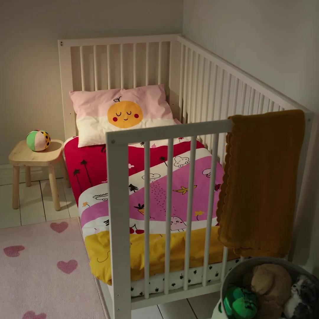 Забавные персонажи прячутся за яркими полосами на этом мягком пододеяльнике и готовы составить компанию вашему малышу, когда пора отдыхать. Кто знает, чем они займутся, когда вы выключите свет?