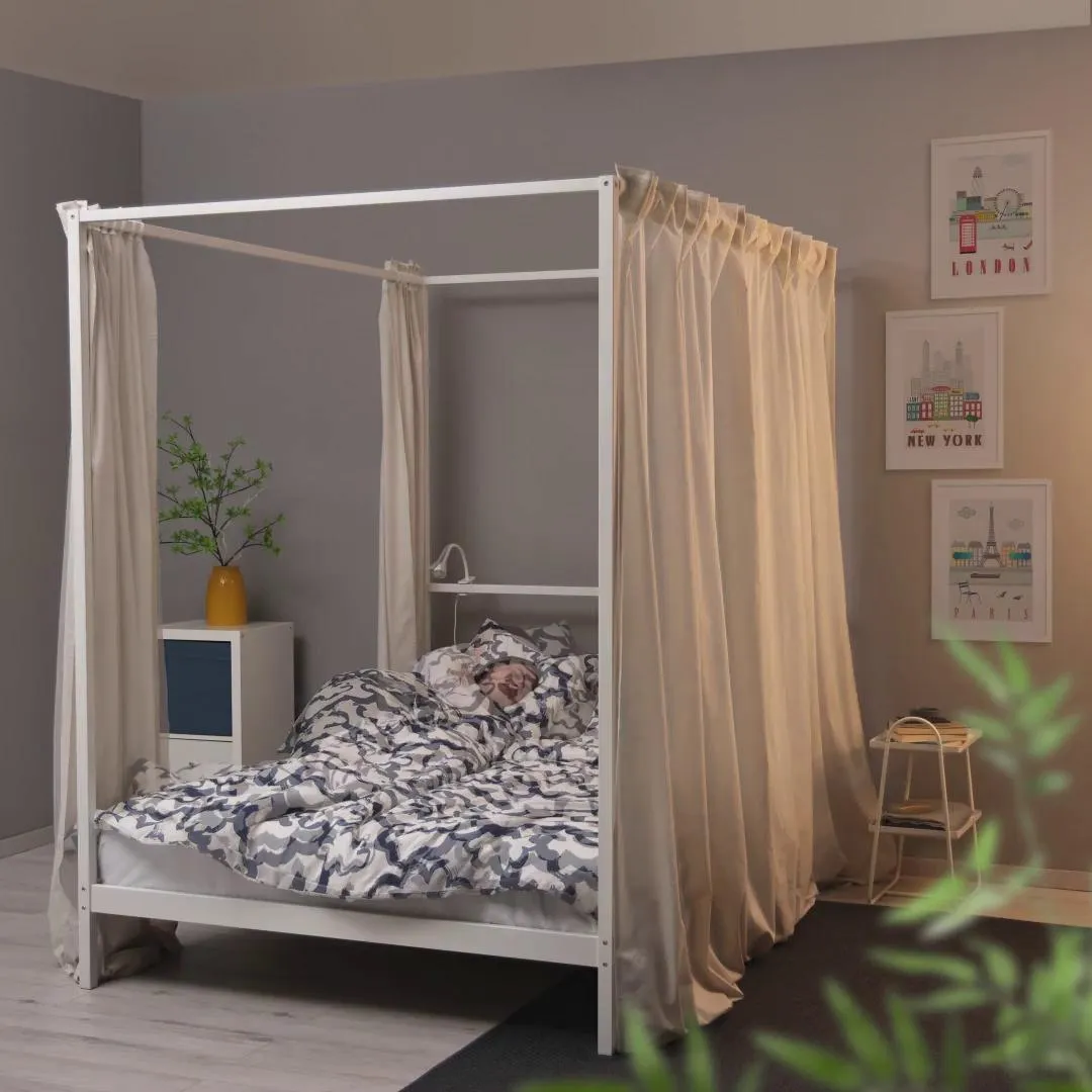 С кроватью VITARNA с балдахином вы создадите уютный уголок как для сна, так и для отдыха. Добавьте шторы и освещение, чтобы оформить свой собственный уголок даже в общей комнате.