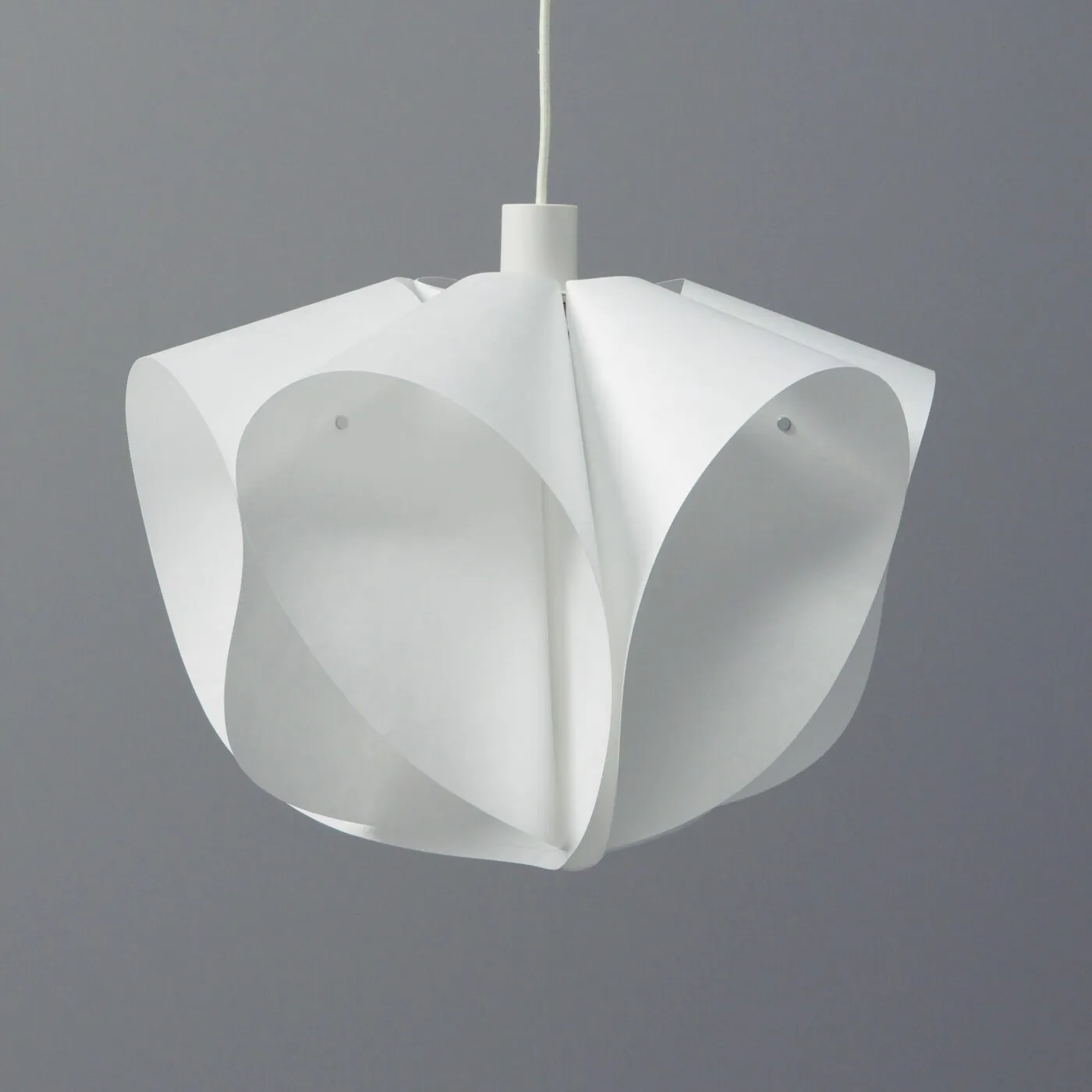 Абажур из бумаги? Еще лучше — ведь форма, напоминающая цветок, выполнена из прочного и мягкого синтетического материала, который подлежит переработке. Когда лампа включена, видны все волокна её изысканной структуры.