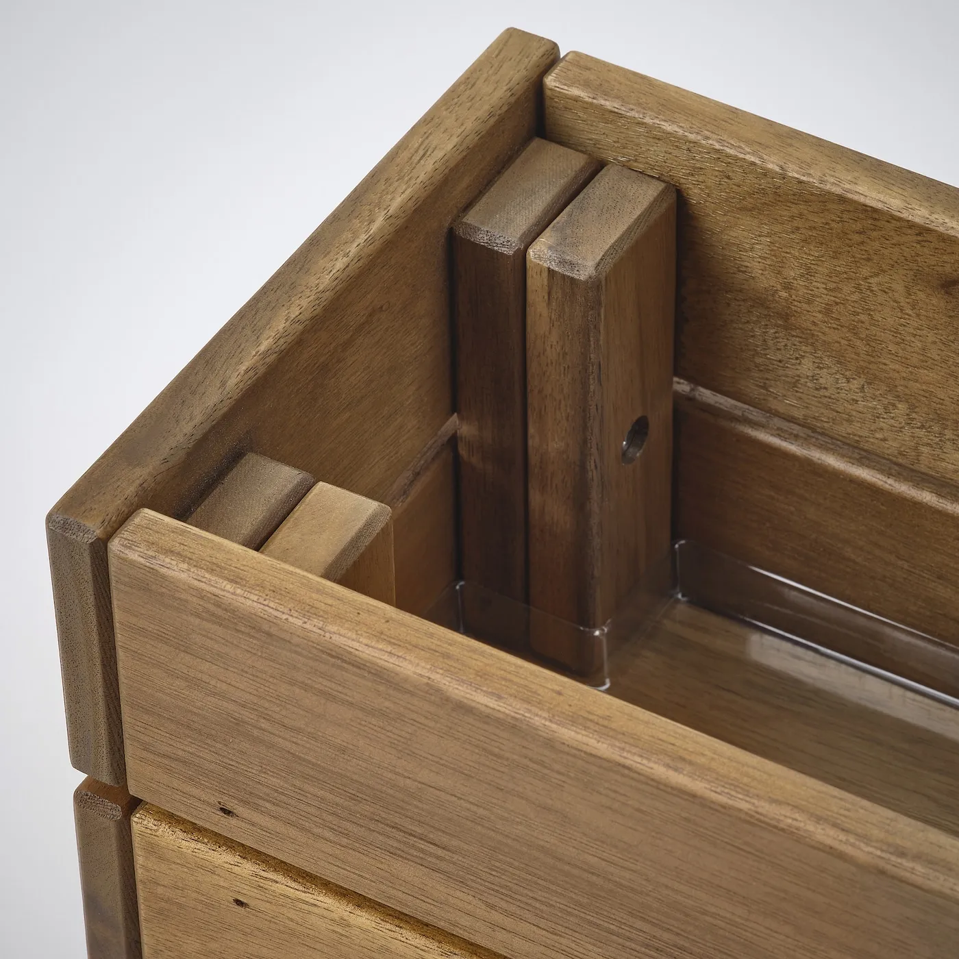 Украсьте свой дворик или балкон зеленью – или создайте целый оазис, соединив несколько таких ящиков для цветов. Они изготовлены из прочной акации, что позволит вам наслаждаться ими в вашем саду.