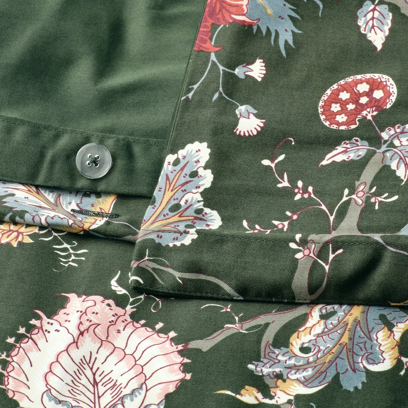 Сатиновое переплетение с изысканным блеском для повседневной элегантности. С одной стороны — цветочный узор, с другой — однотонный темно-серо-зеленый цвет. Гладкая смесь хлопка и вискозы приятно ощущается на коже и позволяет материалу дышать.