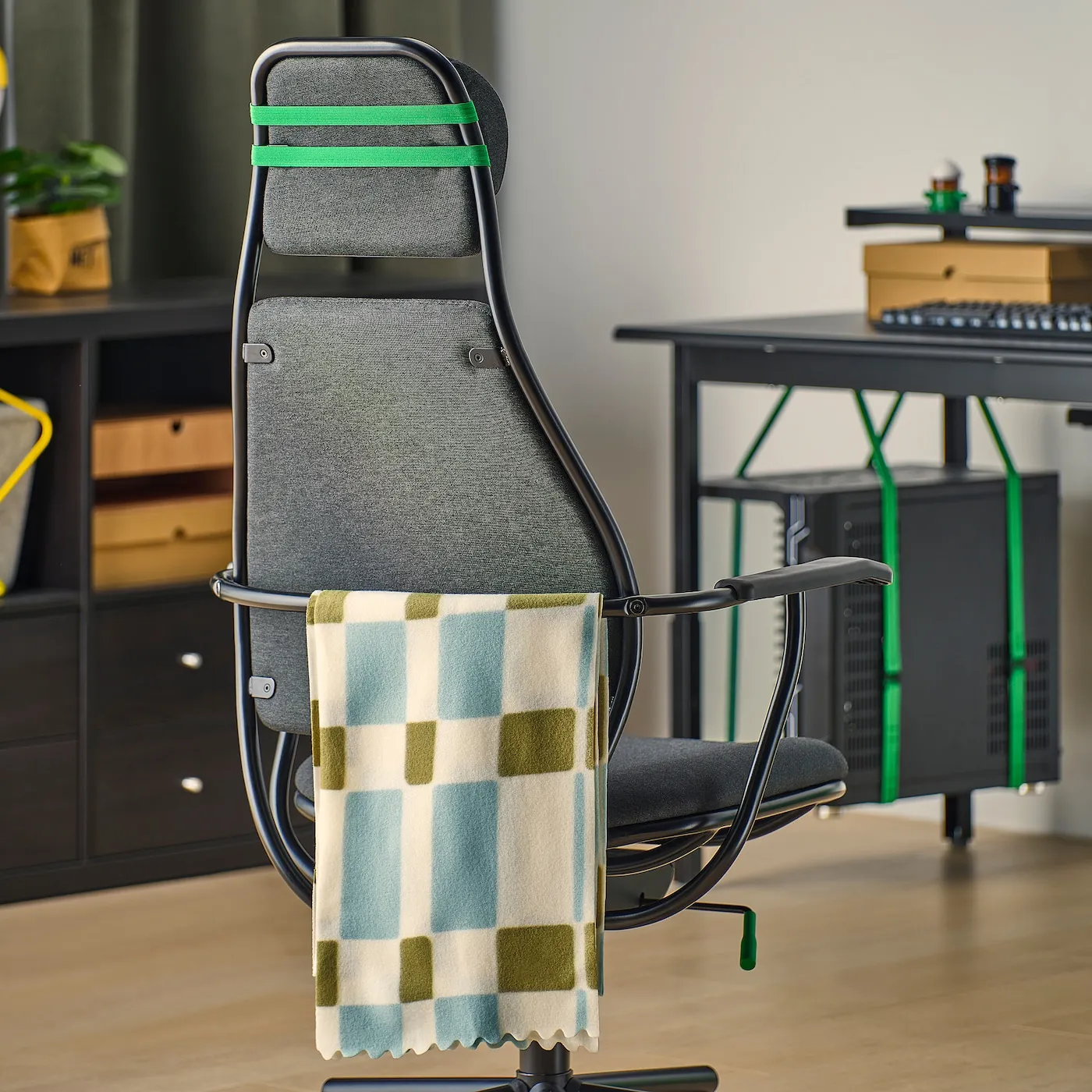 Игровое кресло LÖPARBANA поможет вам быть на высоте во время игры. Отрегулируйте подголовник и высоту сиденья, чтобы получить комфортную поддержку и сосредоточиться, когда начнётся матч.