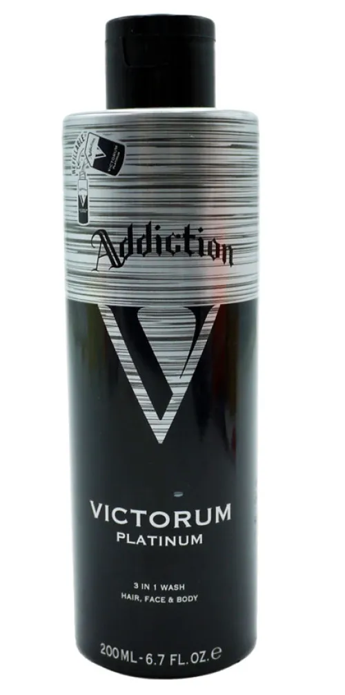 Addiction Victorum Platinum - 3 в 1 WASH для волос, лица и тела 200 мл Addiction Victorum Platinum 3 в 1 Body Wash подходит для тела, волос и лица. Глубоко очищает кожу, не пересушивая ее.