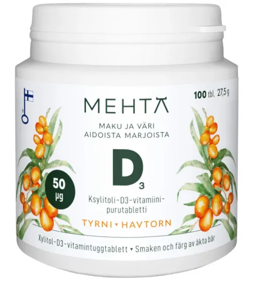 Вкус и цвет продукта исходят от настоящих ягод. Состав: подсластитель (ксилит), холекальциферол (витамин D), порошок сока облепихи
