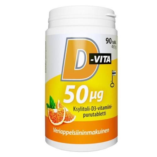Vitabalans D-Vita 50 мкг со вкусом кровавого апельсина, 90 таблеток – жевательные таблетки с ксилитом и витамином D3