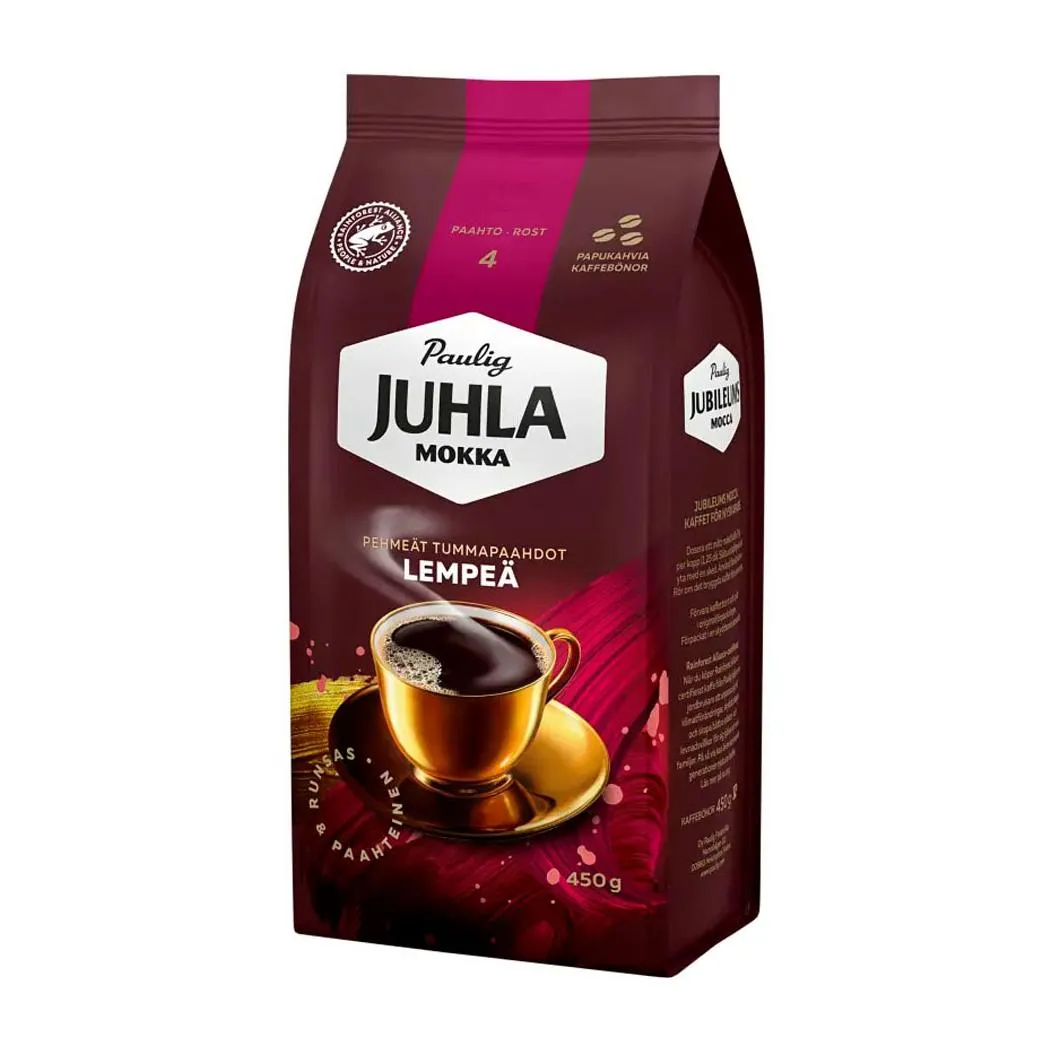Кофе в зернах Paulig Juhla Mokka Lempeä 450 г – это тёмная обжарка и нежный, насыщенный вкус