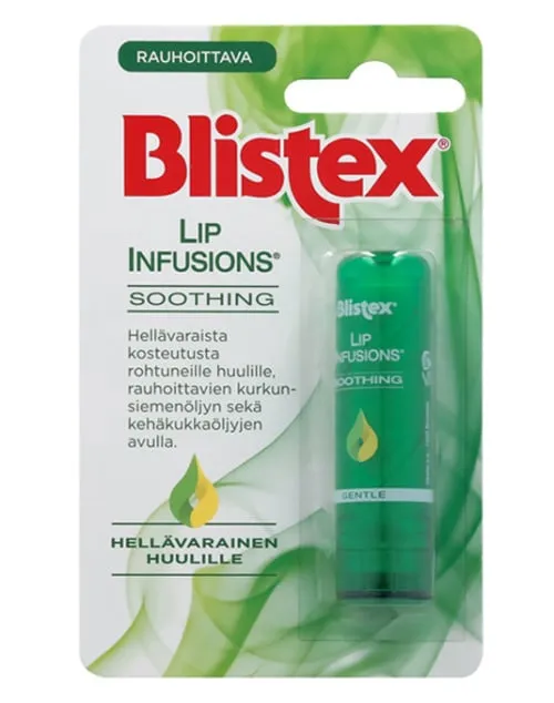 Blistex Lip Ifusions — это нежно успокаивающий бальзам для сухих и раздраженных губ. Невероятно мягкие и гладкие губы. Продукт содержит семена огуречника и масло календулы, известные своими успокаивающими свойствами. Натуральный пчелиный воск и кокосовое масло увлажняют и защищают губы. Дерматологически протестирован.