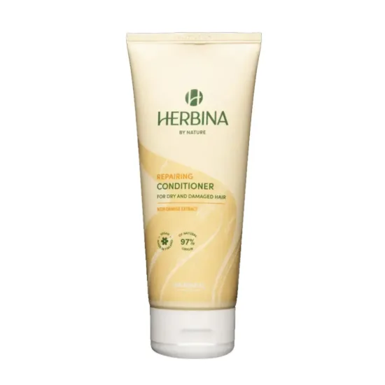 Восстанавливающий кондиционер Herbina Repairing с бодрящим ароматом апельсина укрепляет поврежденные волосы и защищает их от ломкости. Насыщенная формула с натуральным бетаином финского происхождения и укрепляющим экстрактом апельсина, полученным из побочных продуктов пищевой промышленности, облегчает расчесывание и делает волосы мягкими, гладкими и увлажнёнными. Может использоваться также как маска для волос. Для наилучшего результата используйте вместе с шампунем Herbina Repairing.