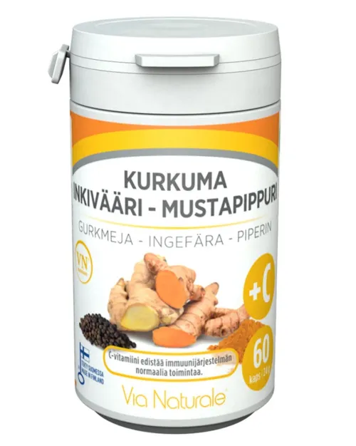 Добавка с витамином С, способствующая нормальному функционированию иммунной системы. Являясь антиоксидантом, витамин С защищает клетки от окисления и снижает усталость и истощение. Турмерик - это многолетнее травянистое растение семейства имбирных с ярко-желтым корневищем. Пиперин, содержащийся в черном перце, является натуральной добавкой, которая улучшает усвоение куркумина. естественно содержит куркуминоиды.