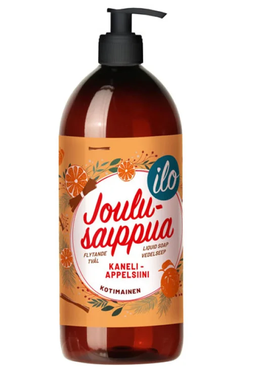 Рождественское жидкое мыло с ароматом корицы и апельсина. Жидкие мыла ILO подходят для мытья рук и всего тела. Не содержат ингредиентов животного происхождения. Знак «Avainlippu» подтверждает финское производство.