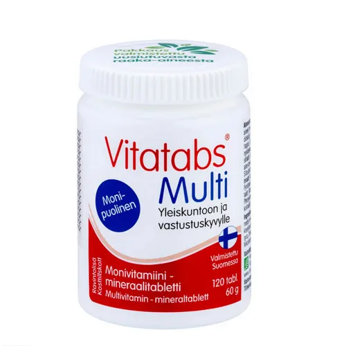 Vitatabs® Multi – это универсальная пищевая добавка, витамины и минералы которой действуют как антиоксиданты и, например, на благо кожи, нервной системы, зубов и костей и поддержания естественной защитной системы организма.