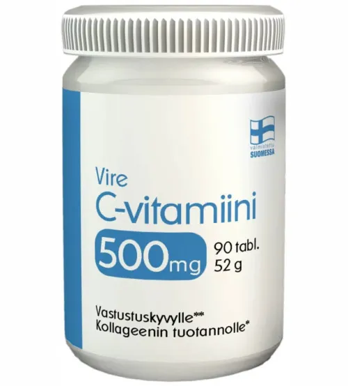 1 таблетка содержит: 500 мг витамина С (625% *) * референсное значение суточной дозы. Дозировка: 1 таблетка в день. Рекомендуемая суточная доза не должна быть превышена. Пищевая добавка не заменяет разнообразное и сбалансированное питание или здоровый образ жизни. Храните в недоступном для детей месте. Страна производитель: Финляндия.