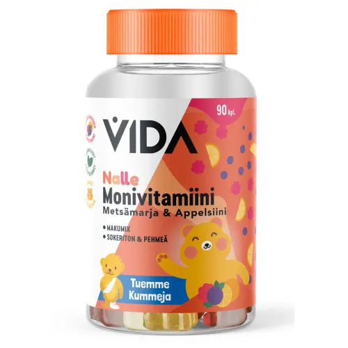 Вкус продукта и рекомендуемый состав – важнейшие критерии выбора детских витаминов, и Vida Nalle решает именно эти две вещи. Мягкие мишки без сахара со вкусом лесных ягод и апельсина для всей семьи от 3 лет.