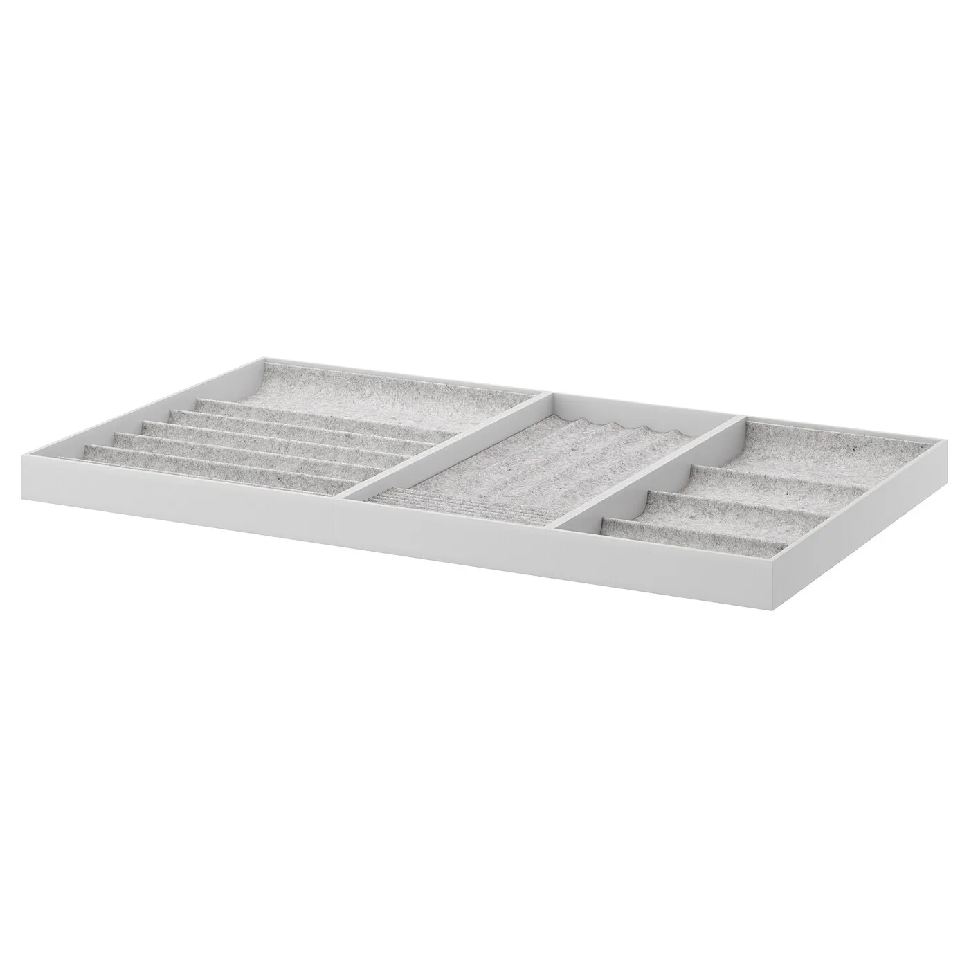 Эта вставка помогает хранить и упорядочивать ваши ожерелья, кольца, серьги и другие аксессуары, такие как солнцезащитные очки и часы.