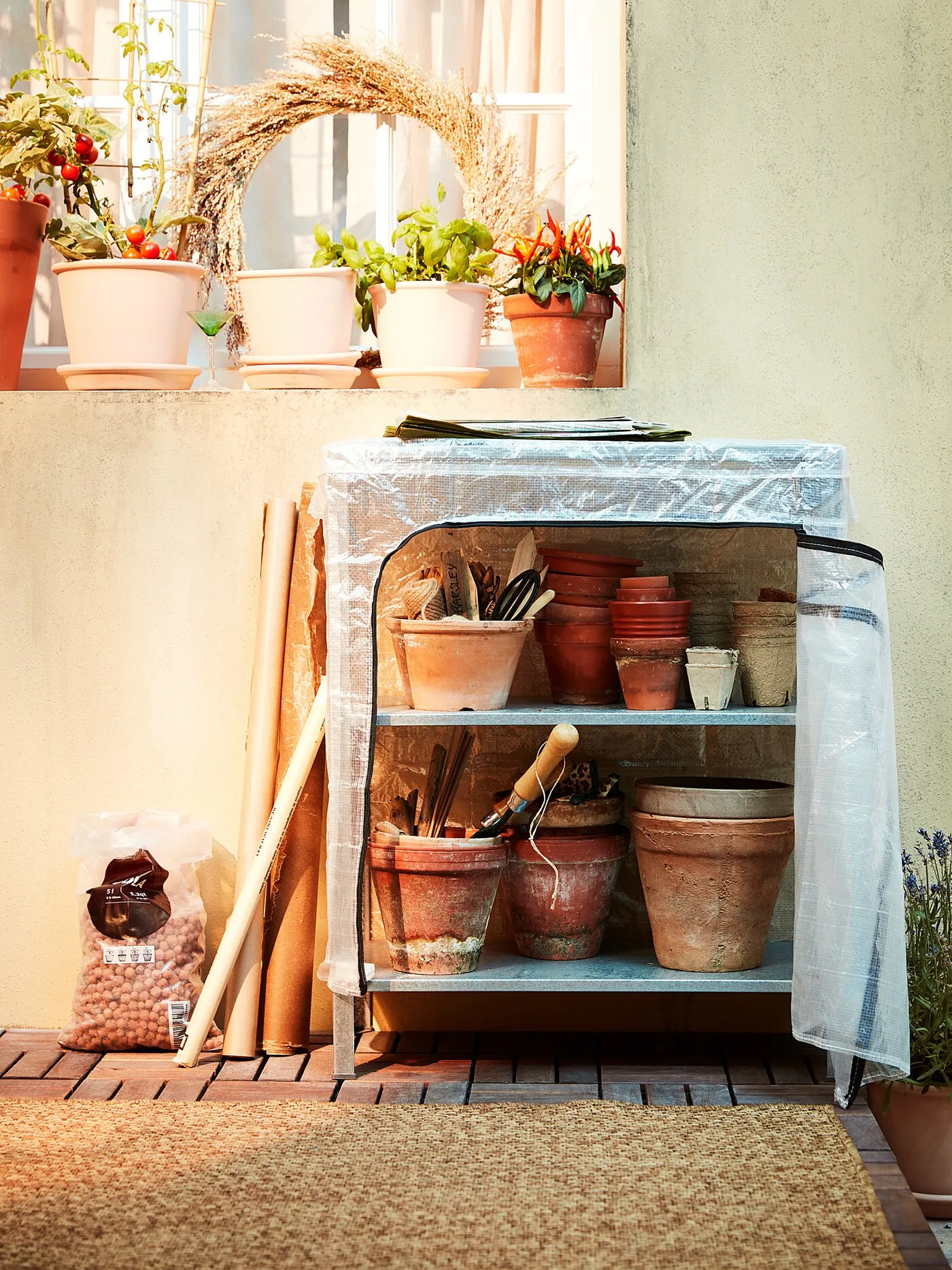 Этот стеллаж отлично подойдет для цветочных горшков и растений ⎼ и с чехлом HYLLIS его можно легко превратить в теплицу.