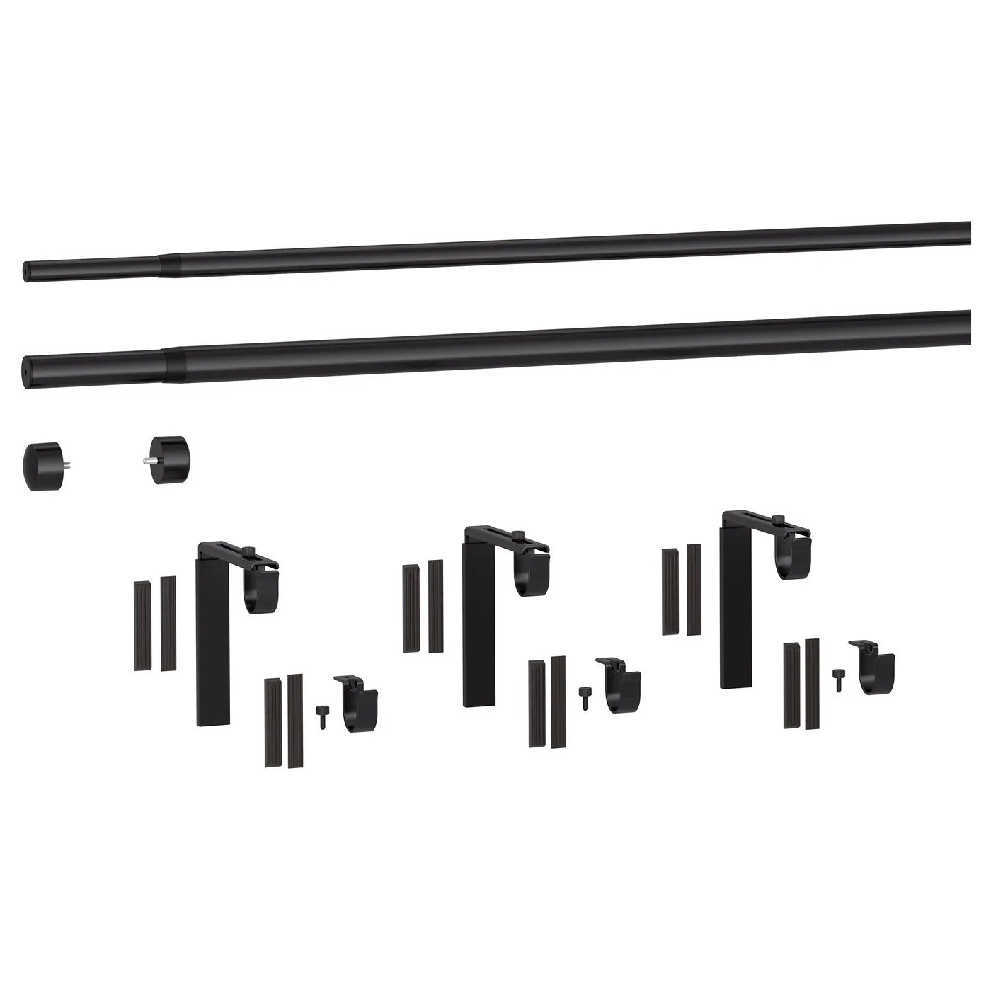 Комплект дополняется настенно-потолочными кронштейнами BETYDLIG: 2 кронштейна для длины до 140 см и 3 кронштейна для длины 140-210 см.