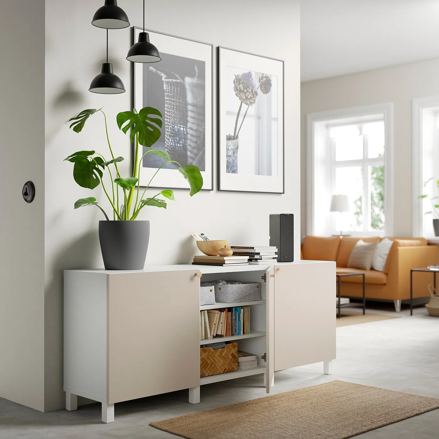 Эта комбинация состоит из нескольких отдельных элементов. Используйте верхнюю панель BESTÅ, продающуюся отдельно, чтобы скрыть стыки между корпусами и создать единый вид.
