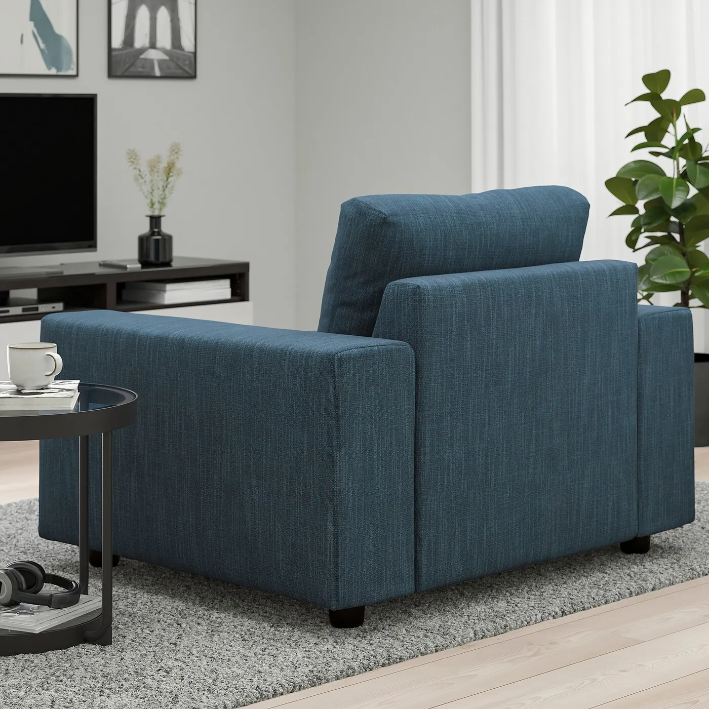 Вы можете дополнить кресло подголовником VIMLE, чтобы сделать спинку выше, обеспечивая комфортную поддержку шеи.