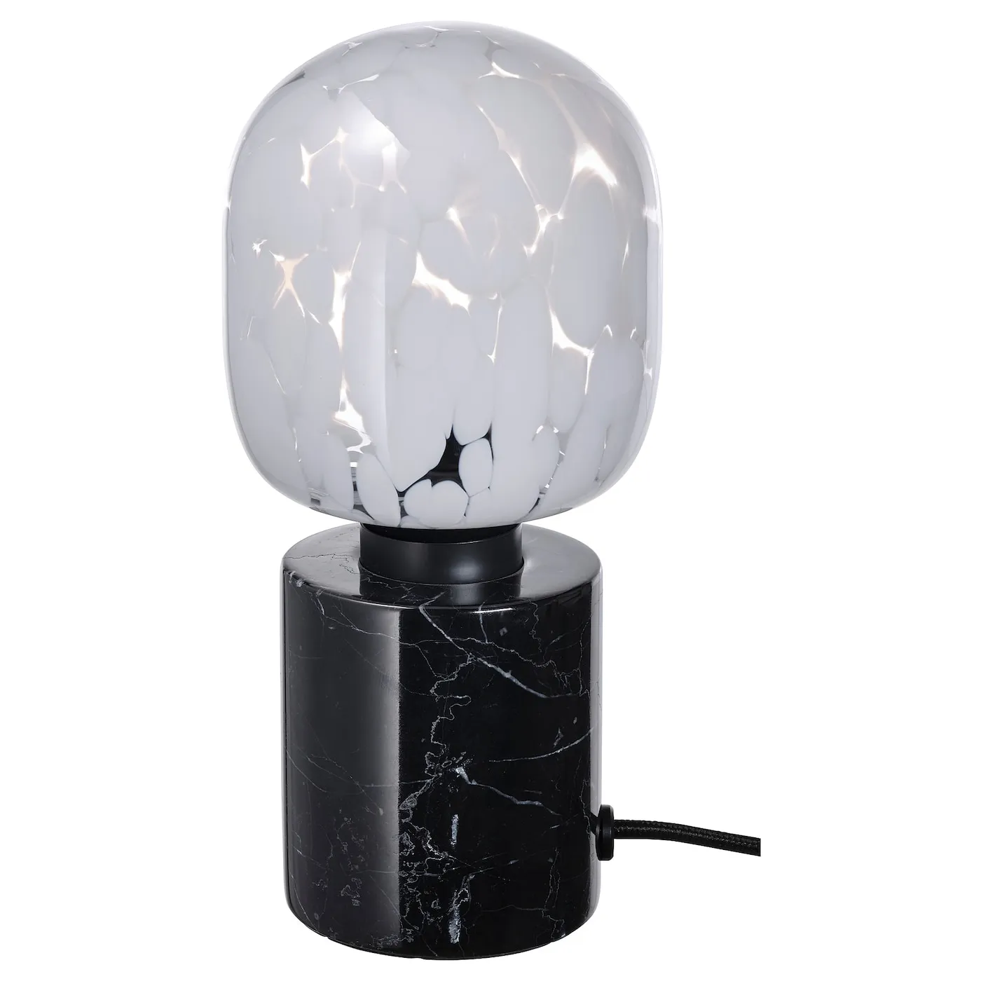 Эта декоративная лампа имеет небольшое основание из черного мрамора и лампочку светодиодного типа с неровными точками, создающими рассеянное теплое свечение. Подойдет как для стола, так и для окна.