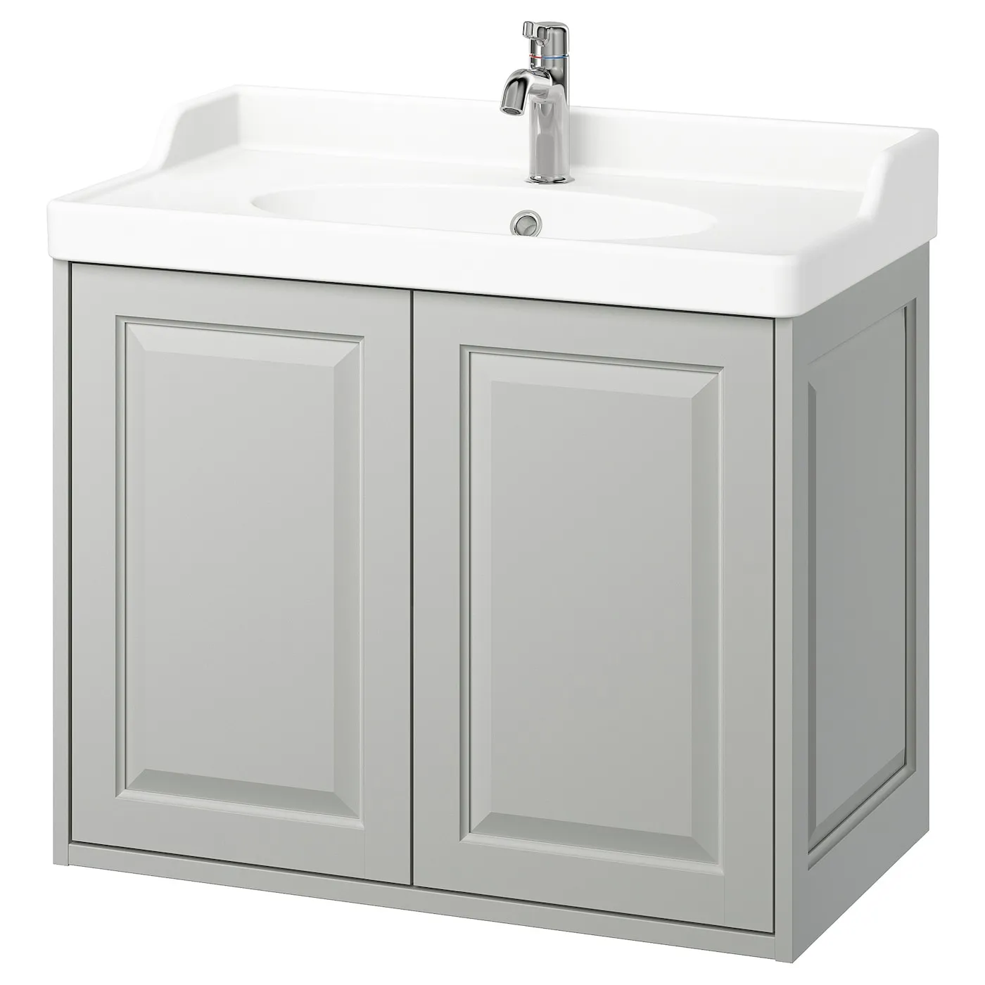 Мебель для ванной комнаты TÄNNFORSEN выражает классическую элегантность благодаря скошенным граням, придающим изделию утонченный вид. Этот комплект предлагает закрытое хранение и приподнятый задний бортик для усиления традиционной атмосферы.
