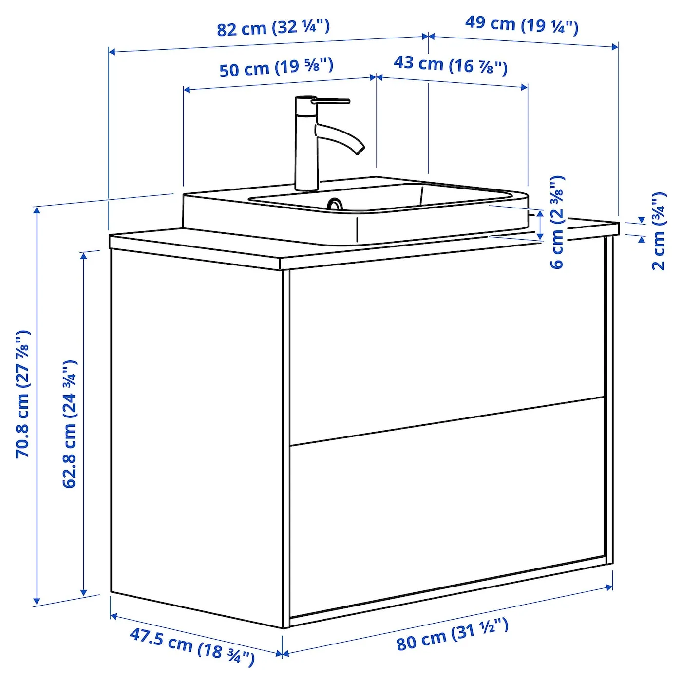 Ванная мебель ÄNGSJÖN отличается современным дизайном с минималистичными деталями. Эта тумба с полуутопленной раковиной и столешницей станет стильным элементом вашего санузла.