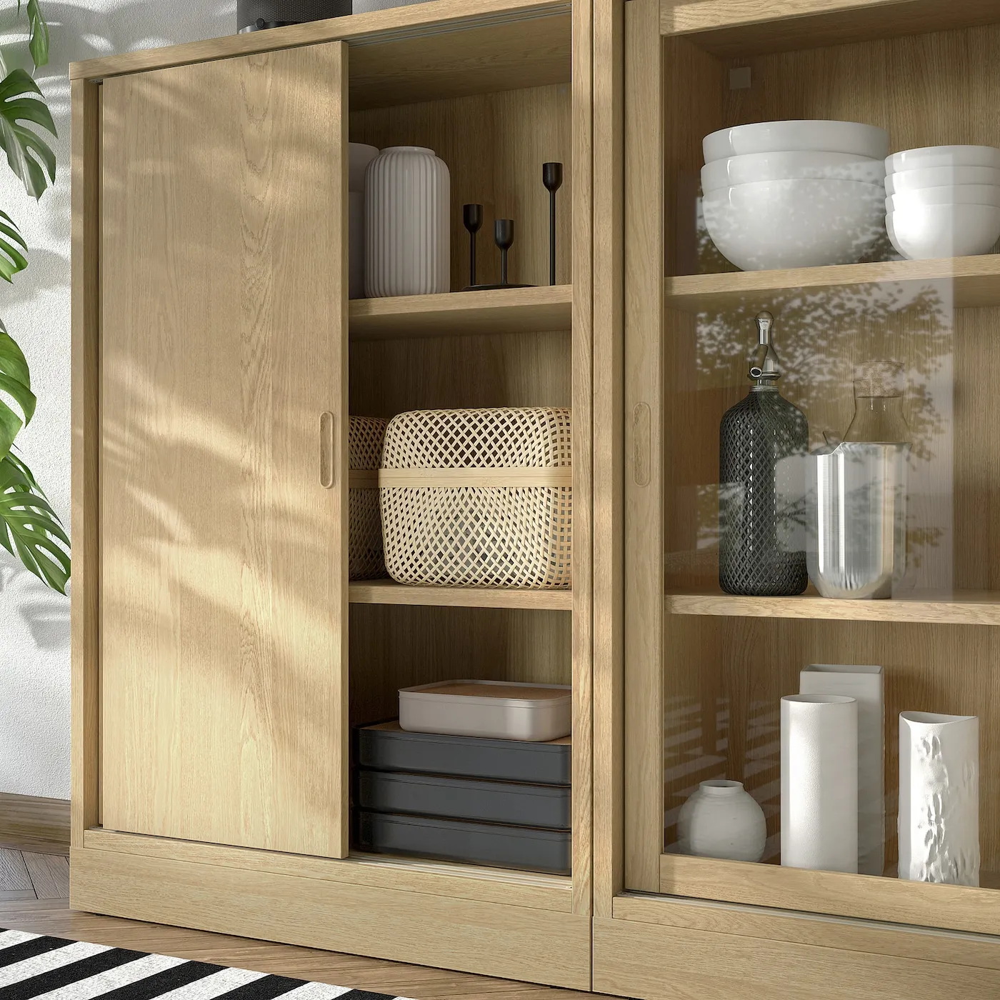 Классический дизайн сочетается с великолепно обработанным шпоном в серии TONSTAD, придавая мебели уникальный характер. С этой комбинацией можно выбрать, что скрыть, а что показать, избегая попадания пыли.
