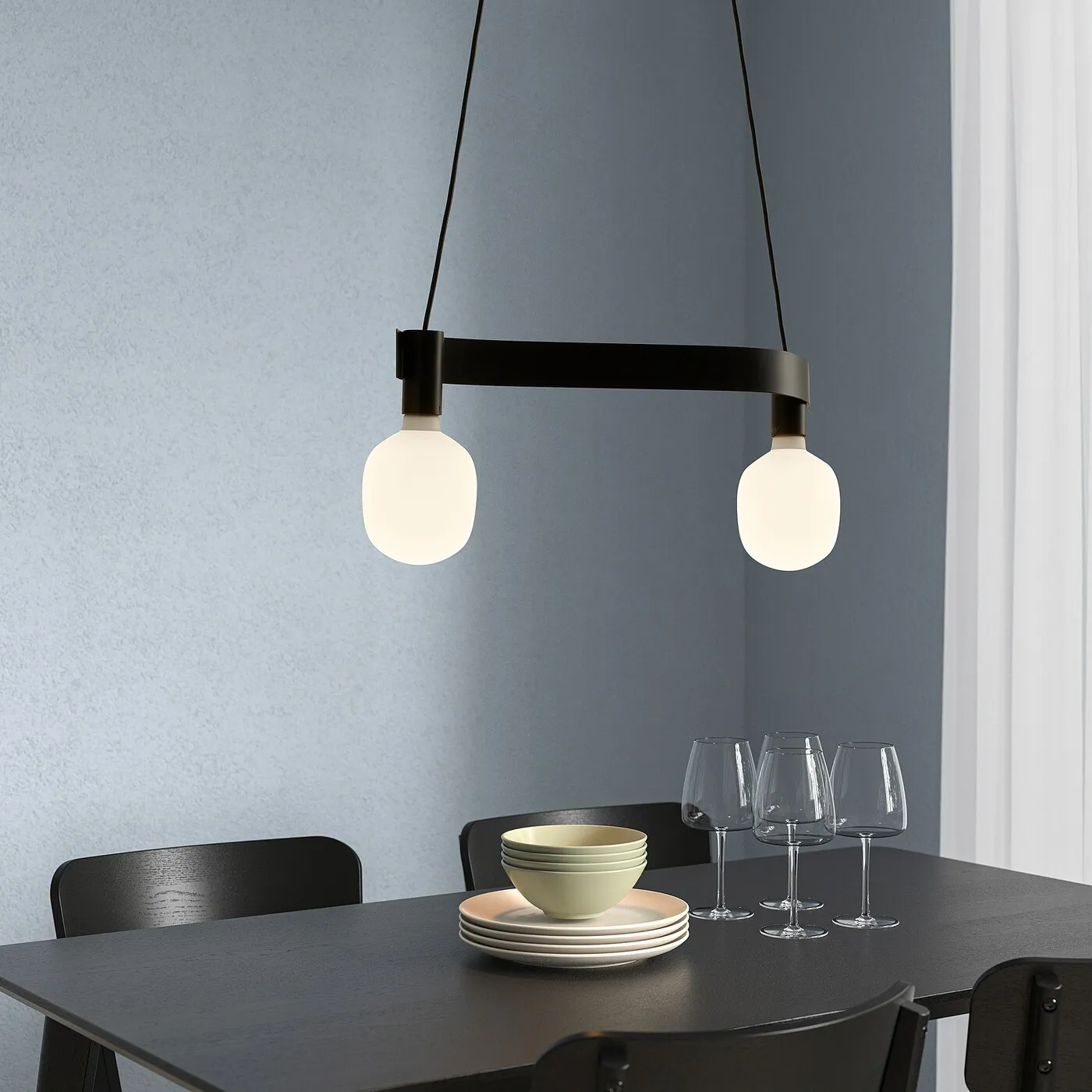 Этот подвесной светильник волнообразной формы оснащен 2 трубчатыми светодиодными лампочками, которые можно включать, выключать и регулировать яркость по беспроводной связи. Идеально подходит для размещения над обеденным столом или кухонным островом.
