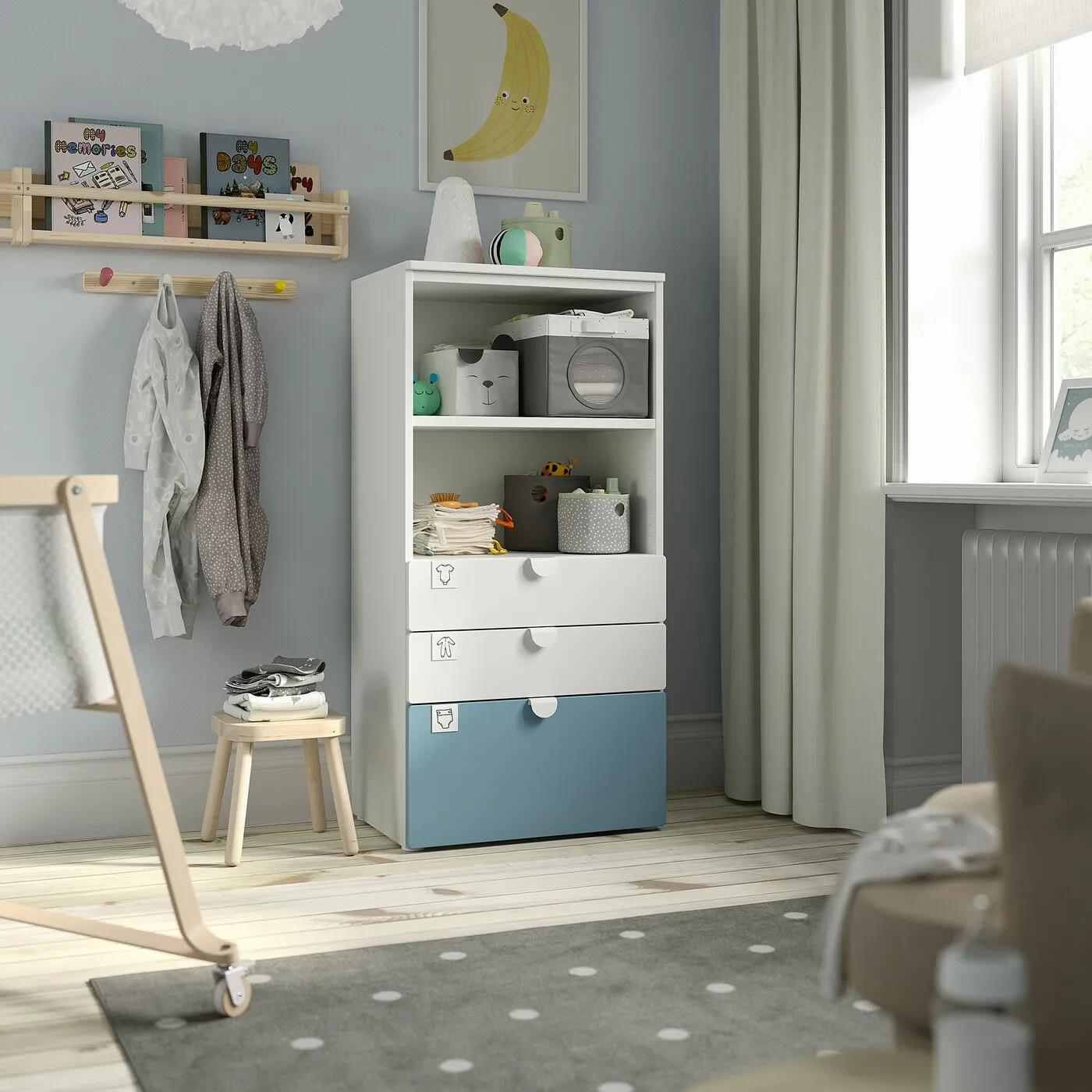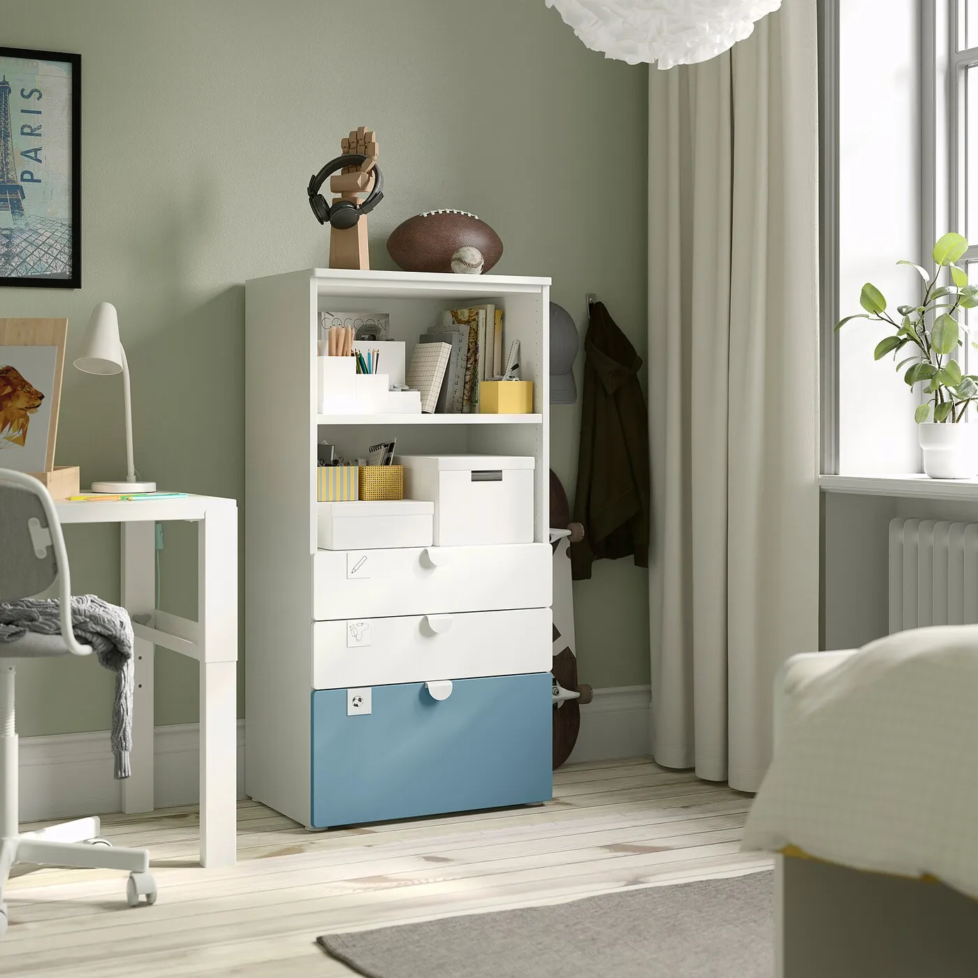 Этот книжный шкаф обеспечивает много места для хранения на небольшой площади — от первых лет жизни до подросткового возраста. На открытых полках можно разместить предметы, которыми удобно пользоваться каждый день, а в ящиках найдется место для вещей любого размера.