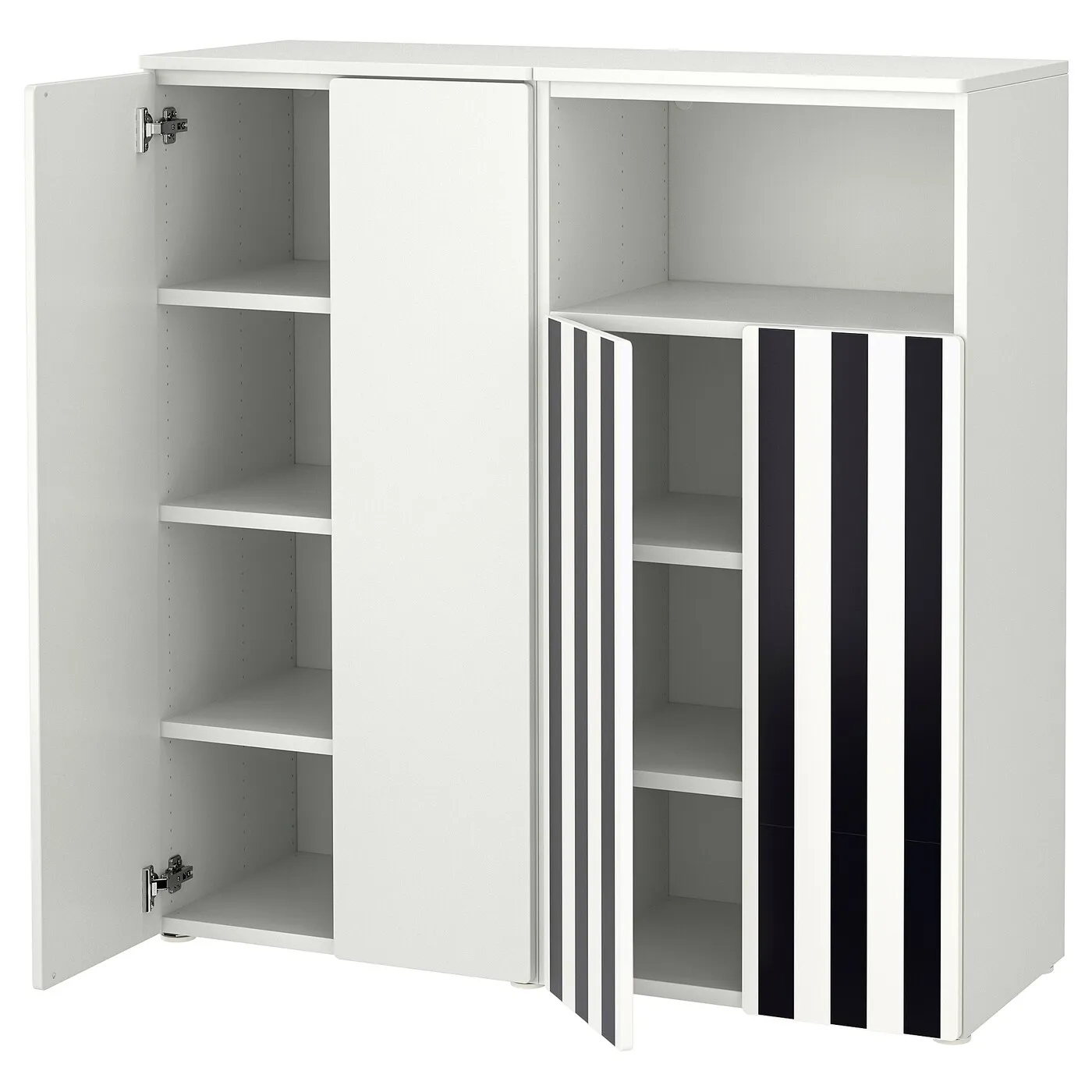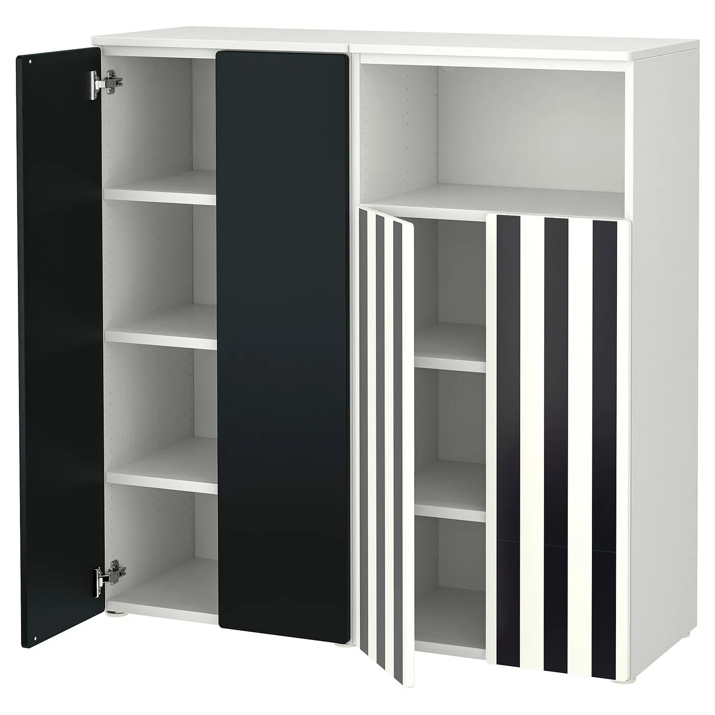Со стальными дверцами в черно-белую полоску, хранение вашего ребенка приобретает стильный вид, который легко сочетать с текстилем и другими деталями разных цветов.