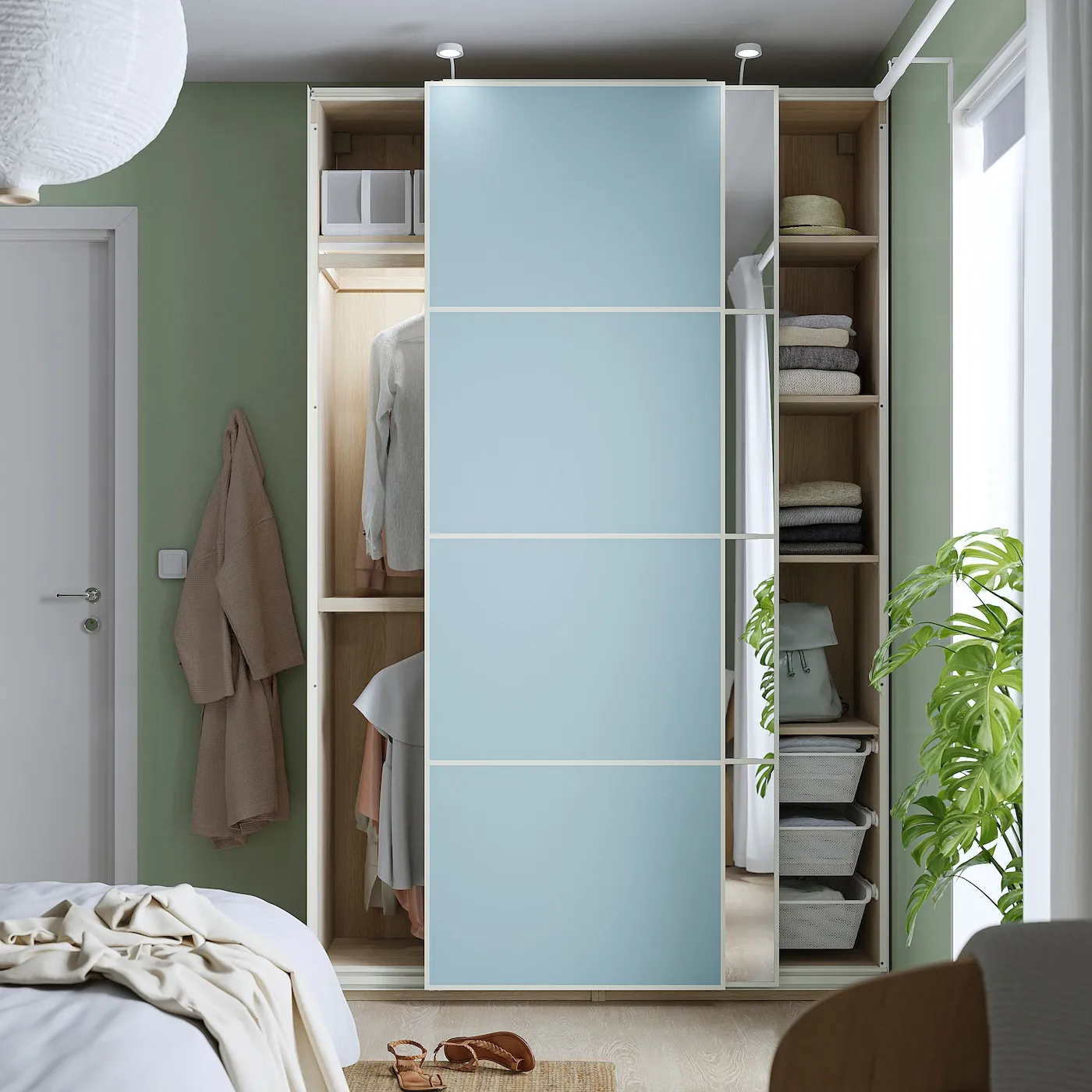 Раздвижные двери не требуют ручек или кнопок, что создает вневременной образ, легко сочетающийся с различными стилями.