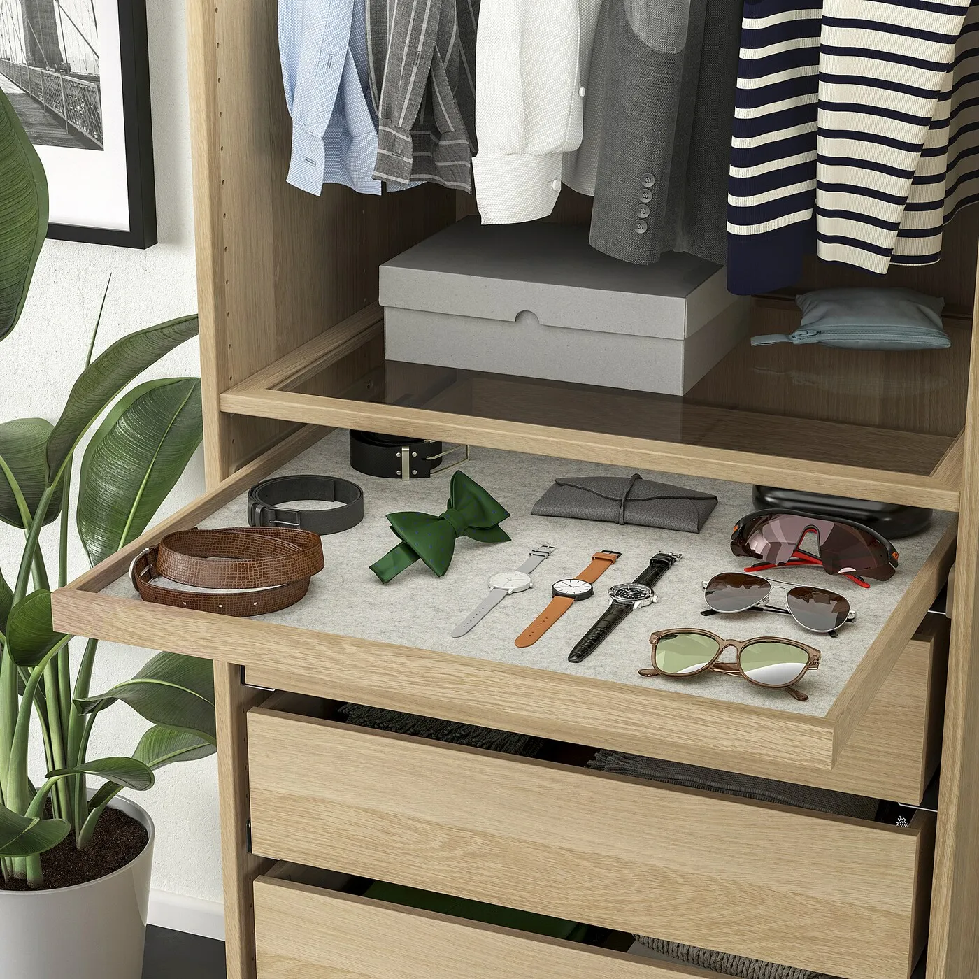Коврик легко обрезать до нужного размера и формы. Он идеально соответствуют самым большим ящикам KOMPLEMENT, глубиной 58 см, и имеет направляющие для обрезки под меньшие размеры.
