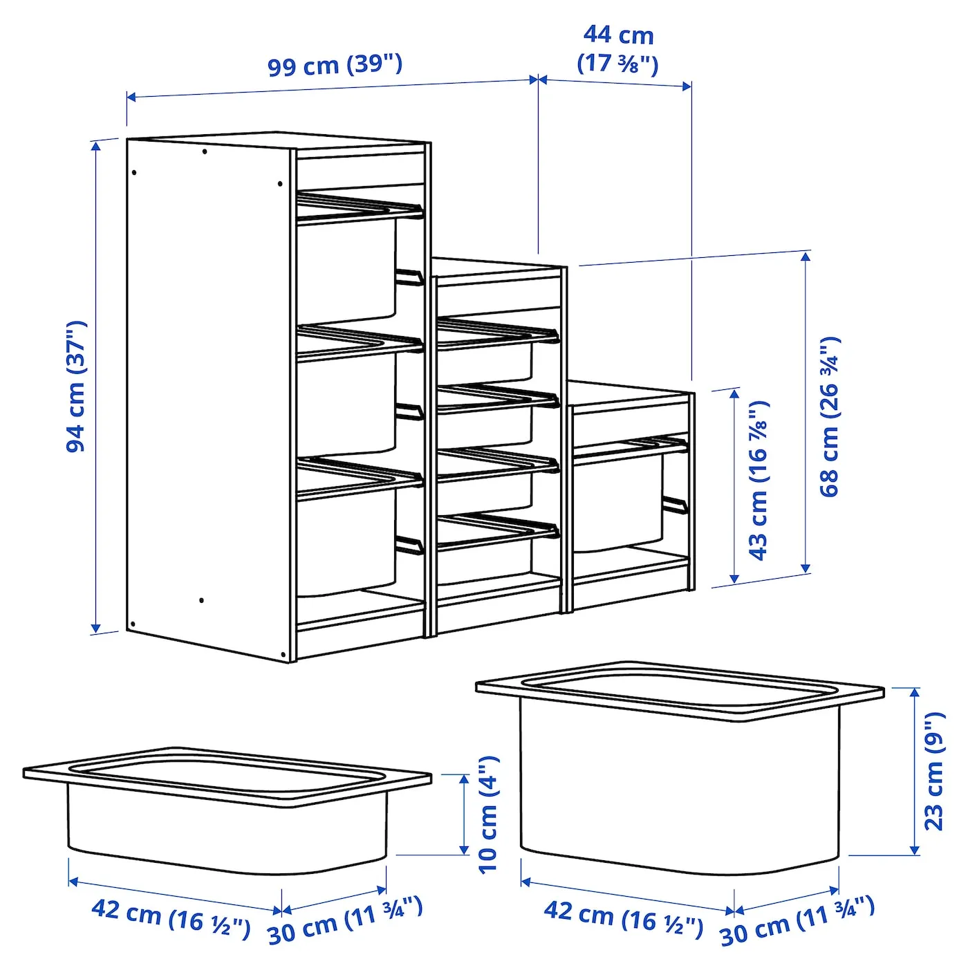 Детям нужно удобное и вместительное место для хранения своих вещей. Серия TROFAST включает деревянные каркасы, сетчатые и пластиковые коробки и подносы (не менее 50% переработанного материала). Легко выдвигаются, снимаются и вставляются обратно.